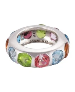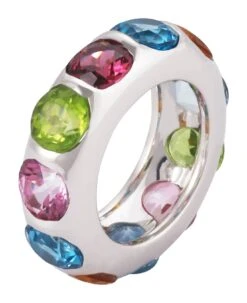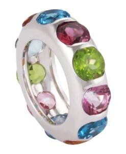 Custom design invisible set muti-colored gemstone ring with 11 faceted round Amethyst, Citrine, Pink Topaz, Peridot, white Topaz and Aquamarine