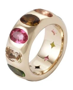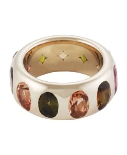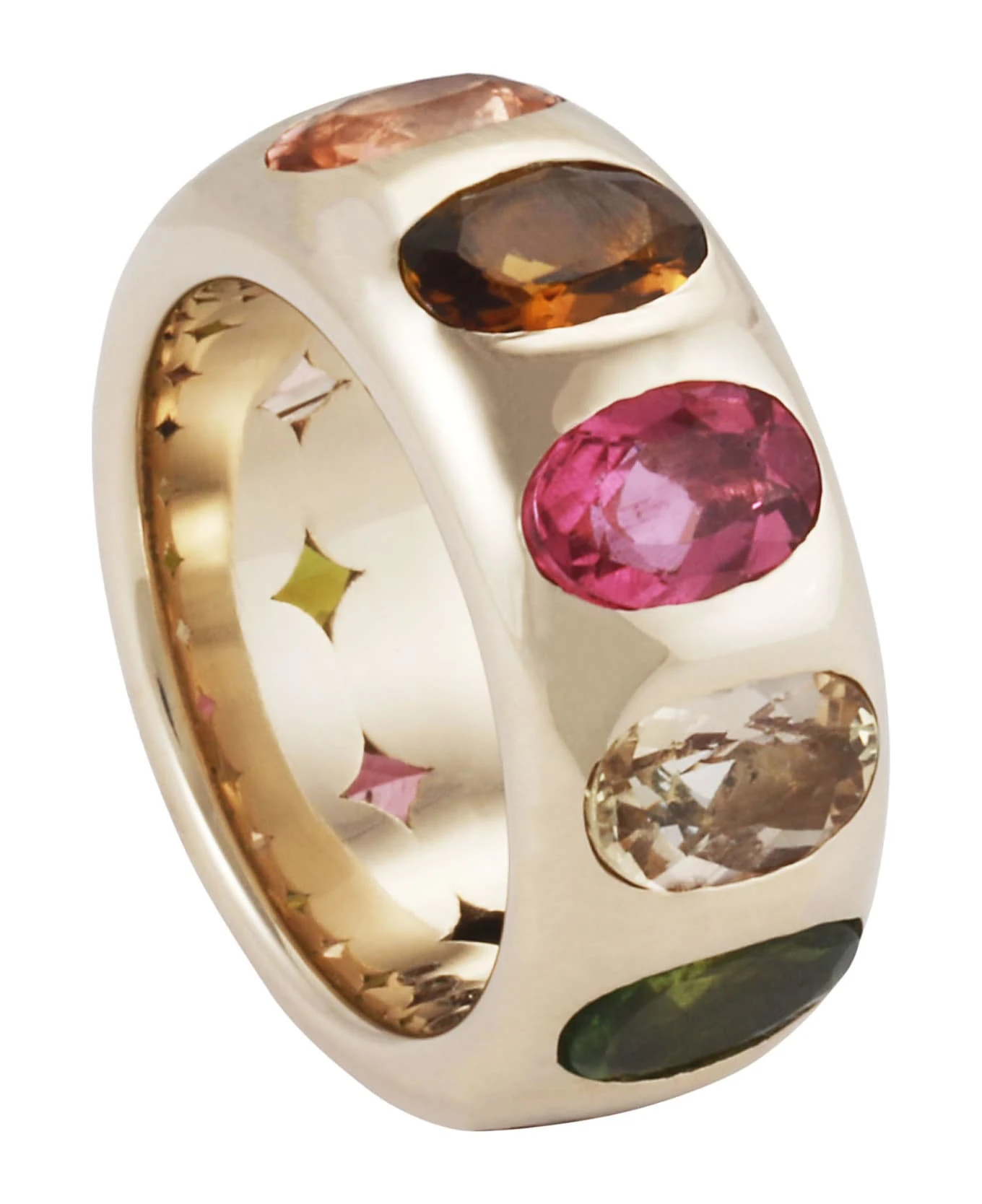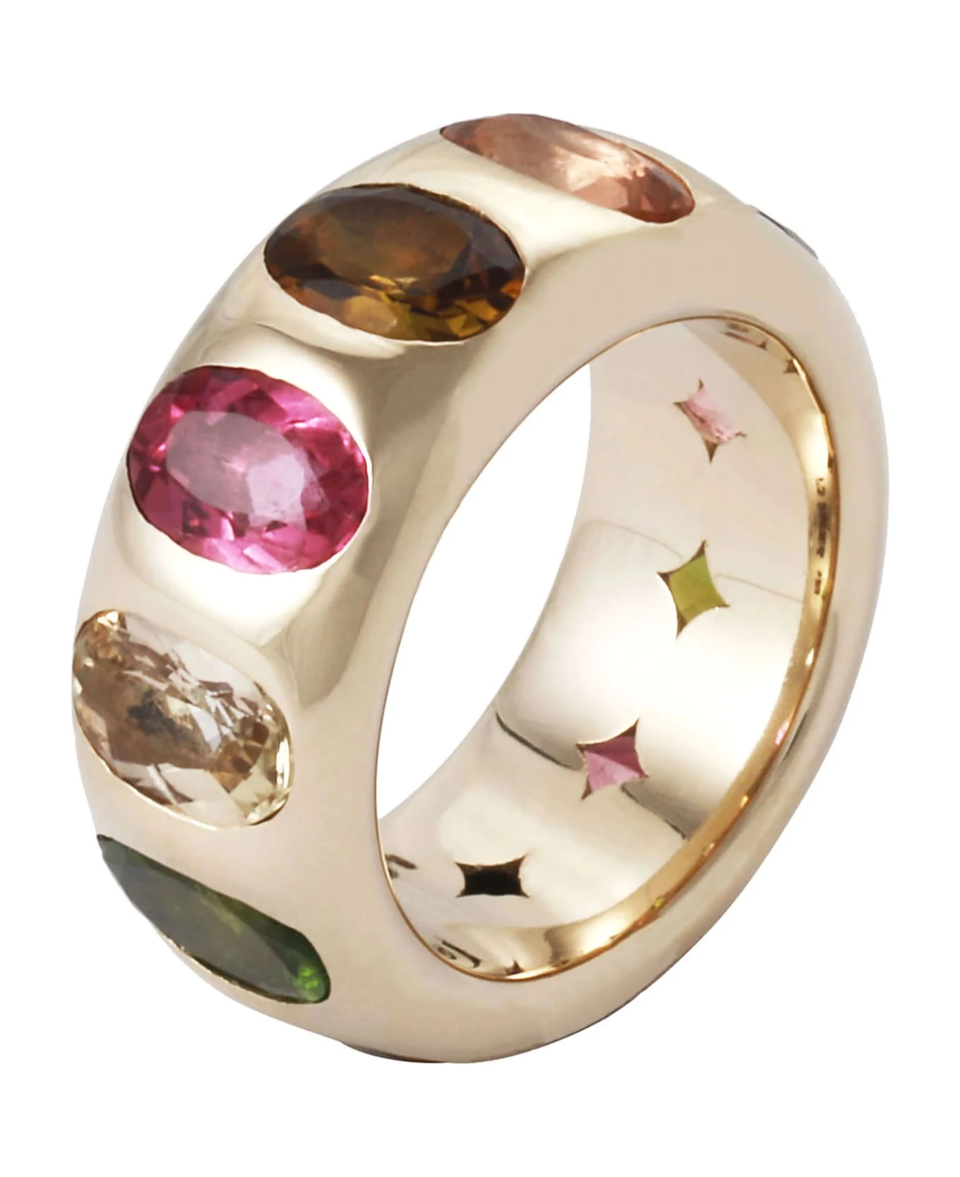 Custom design invisible set ring with multi-colored oval Tourmaline gemstone