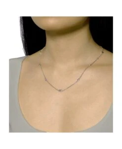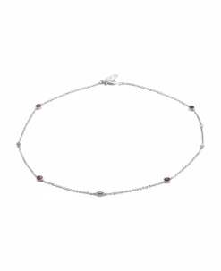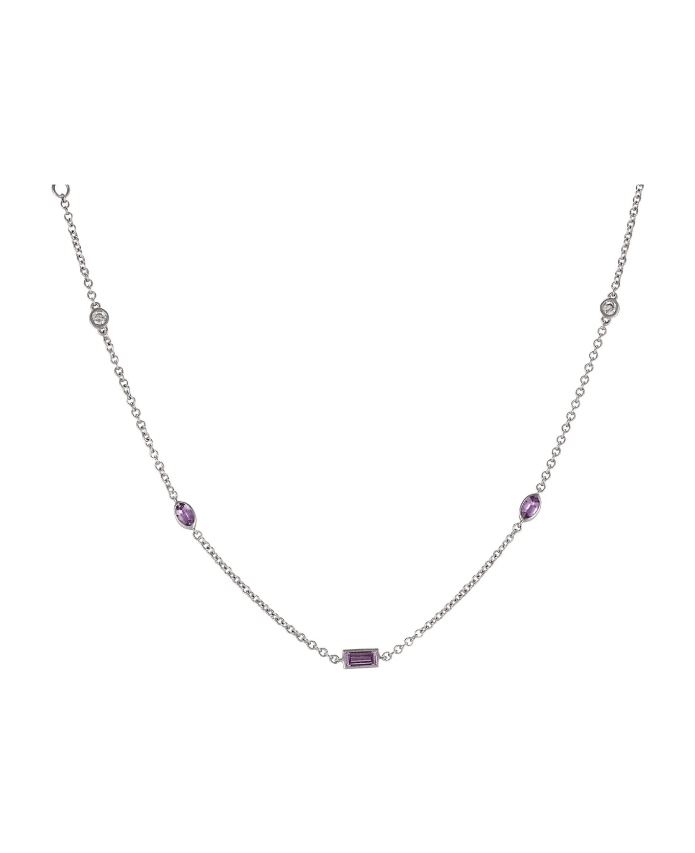 Oval pink Sapphire, straight baguette pink Sapphire and diamond station necklace in bezel set