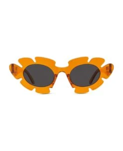Loewe LW40088U – ORANGE (LW40088U4742A) are cat-eye sunglasses made in Italy. They feature orange flower shape injected nylon frame, Loewe logo on temples, and grey lens with 100% UVA/UVB protection.