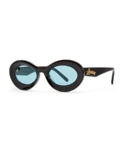 Loewe LW40110U – BLACK (LW40110U5001V) are oval sunglasses, part of the Paulas Ibiza x Loewe Collection. They feature black acetate frame, gold logo on temples, and blue lens with 100% UV protection.