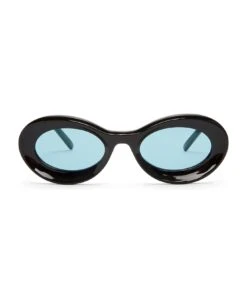 Loewe LW40110U – BLACK (LW40110U5001V) are oval sunglasses, part of the Paulas Ibiza x Loewe Collection. They feature black acetate frame, gold logo on temples, and blue lens with 100% UV protection.