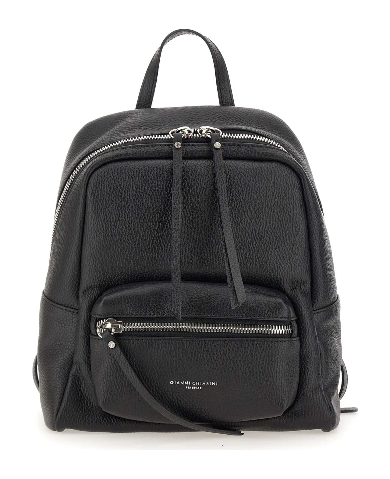 Gianni Chiarini ”Luna” women’s textured leather backpack, black, adjustable shoulder straps, top fastening with zip, front pocket with zip, silver hardware, inside pockets, front silver logo. Dimensions: height 27cm, width 25cm, depth 14cm. Made in Italy.