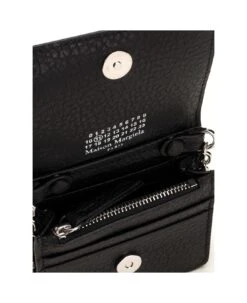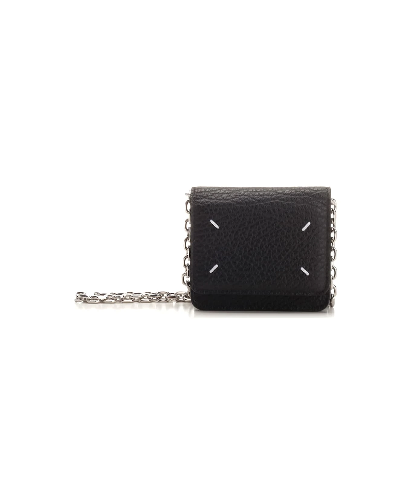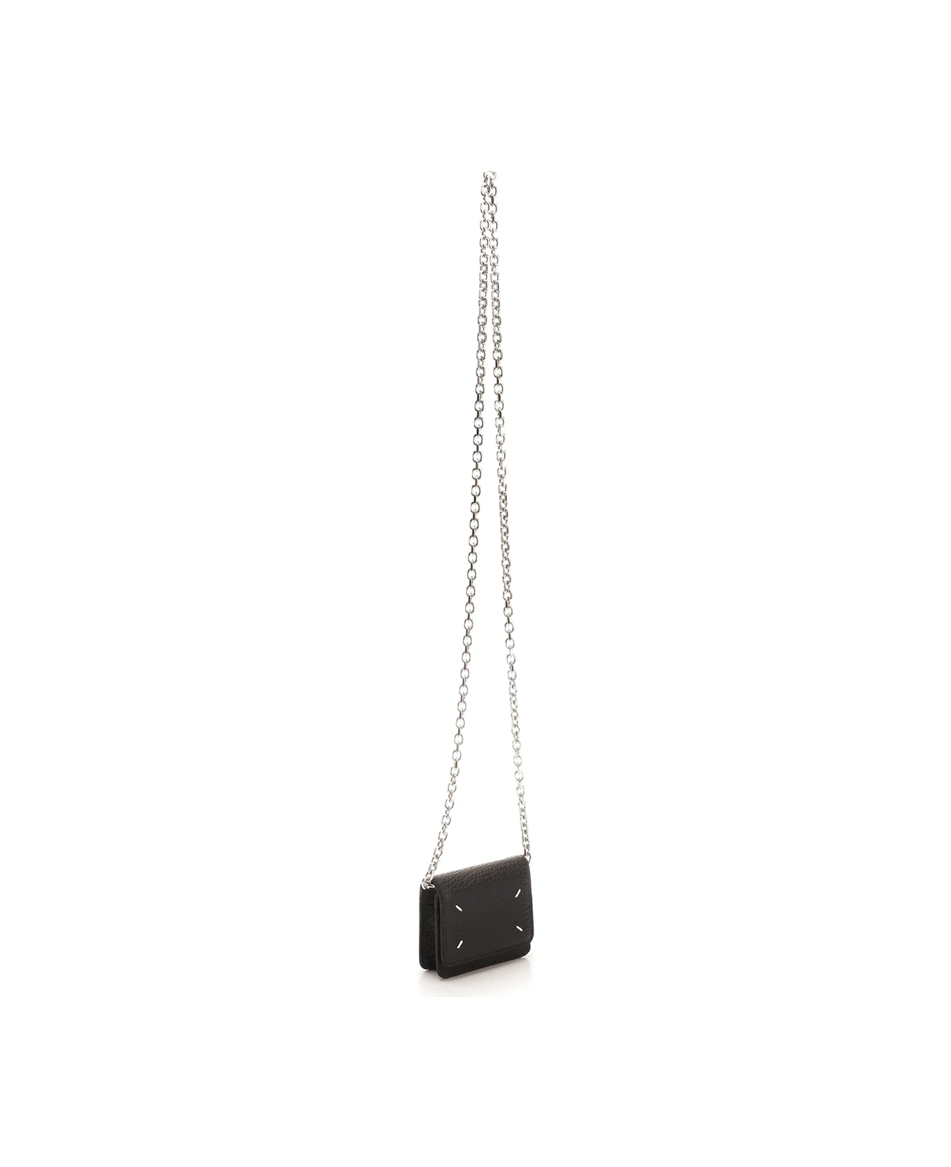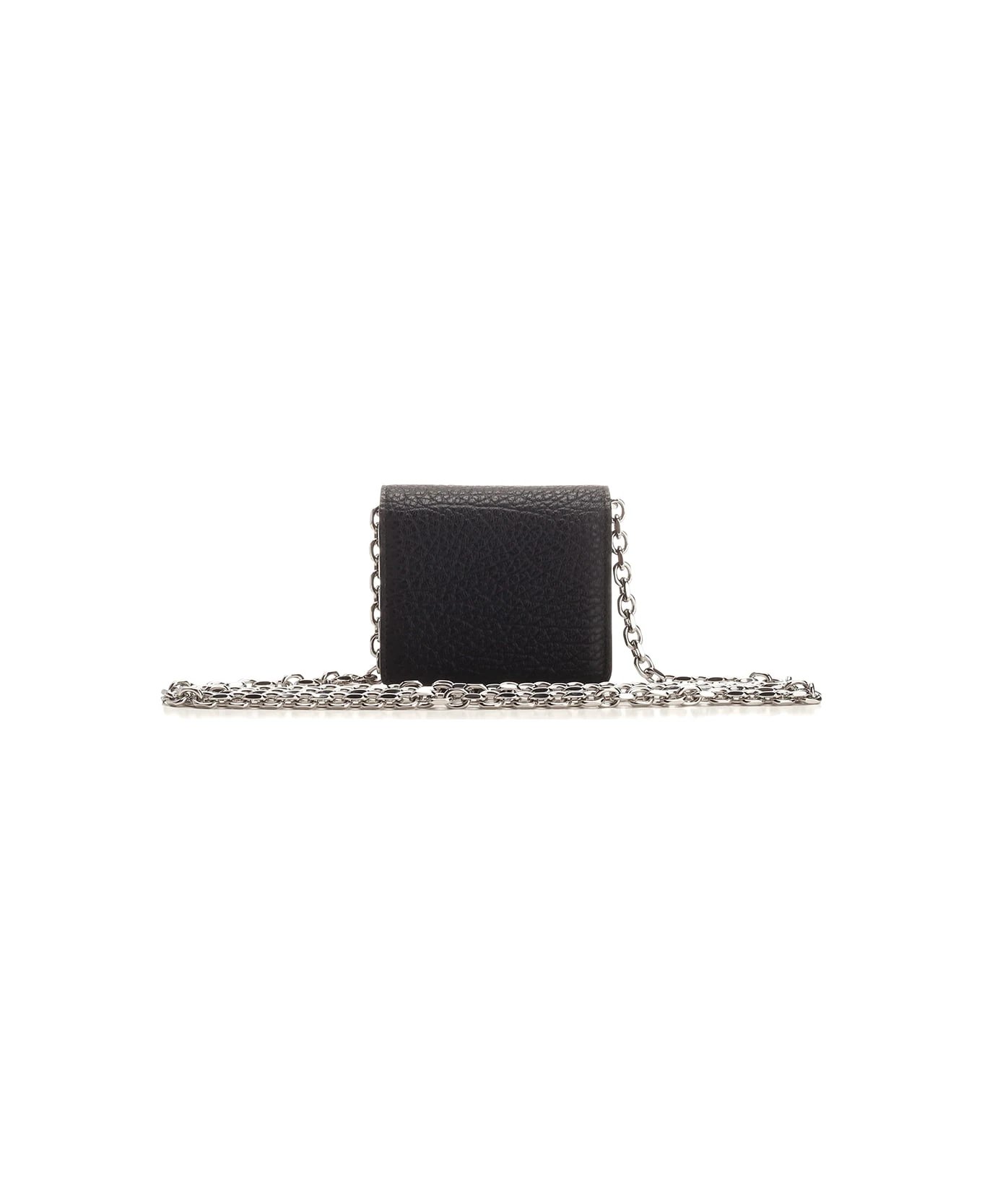 Small wallet by Maison Margiela in grained leather with removable chain shoulder strap and snap button closure