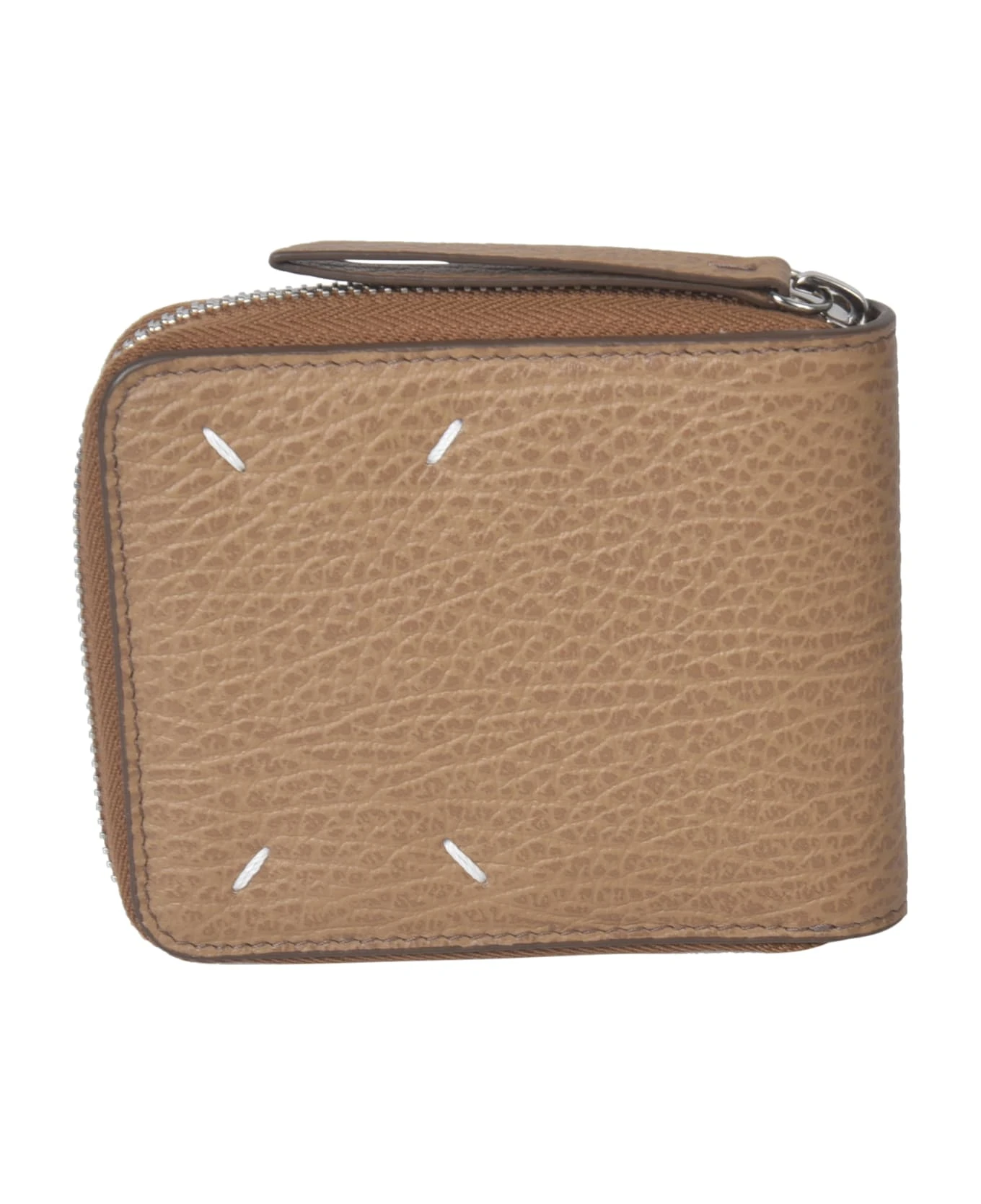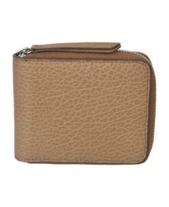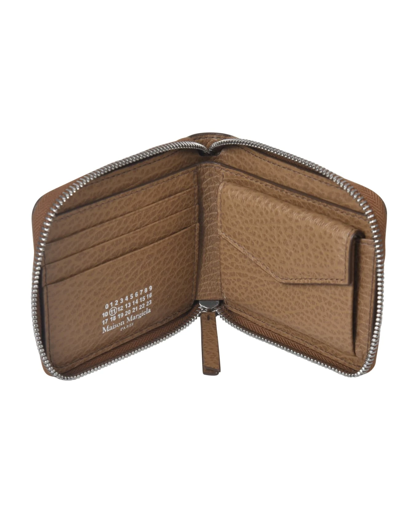 Maison Margiela Natural Brown Leather Small Wallet. Natural Brown leather, zip around fastening, 4 card slots, coin pocket, signature numeric logo printed inside, Moniker stitching on back panel.