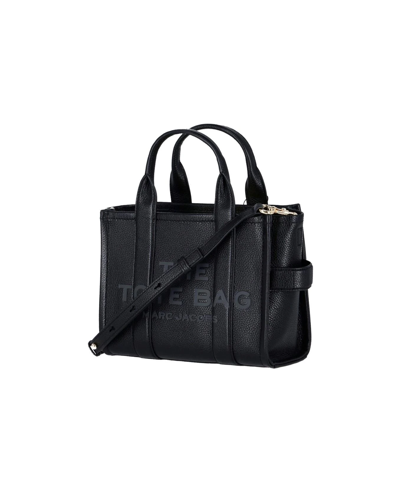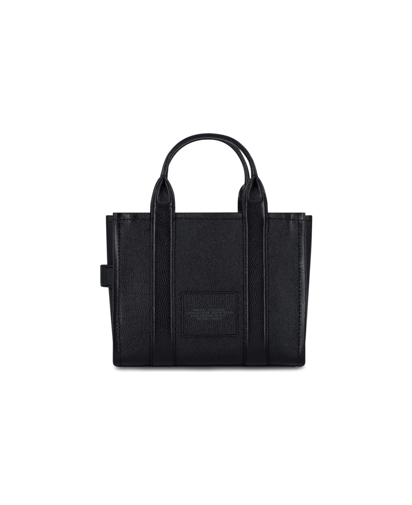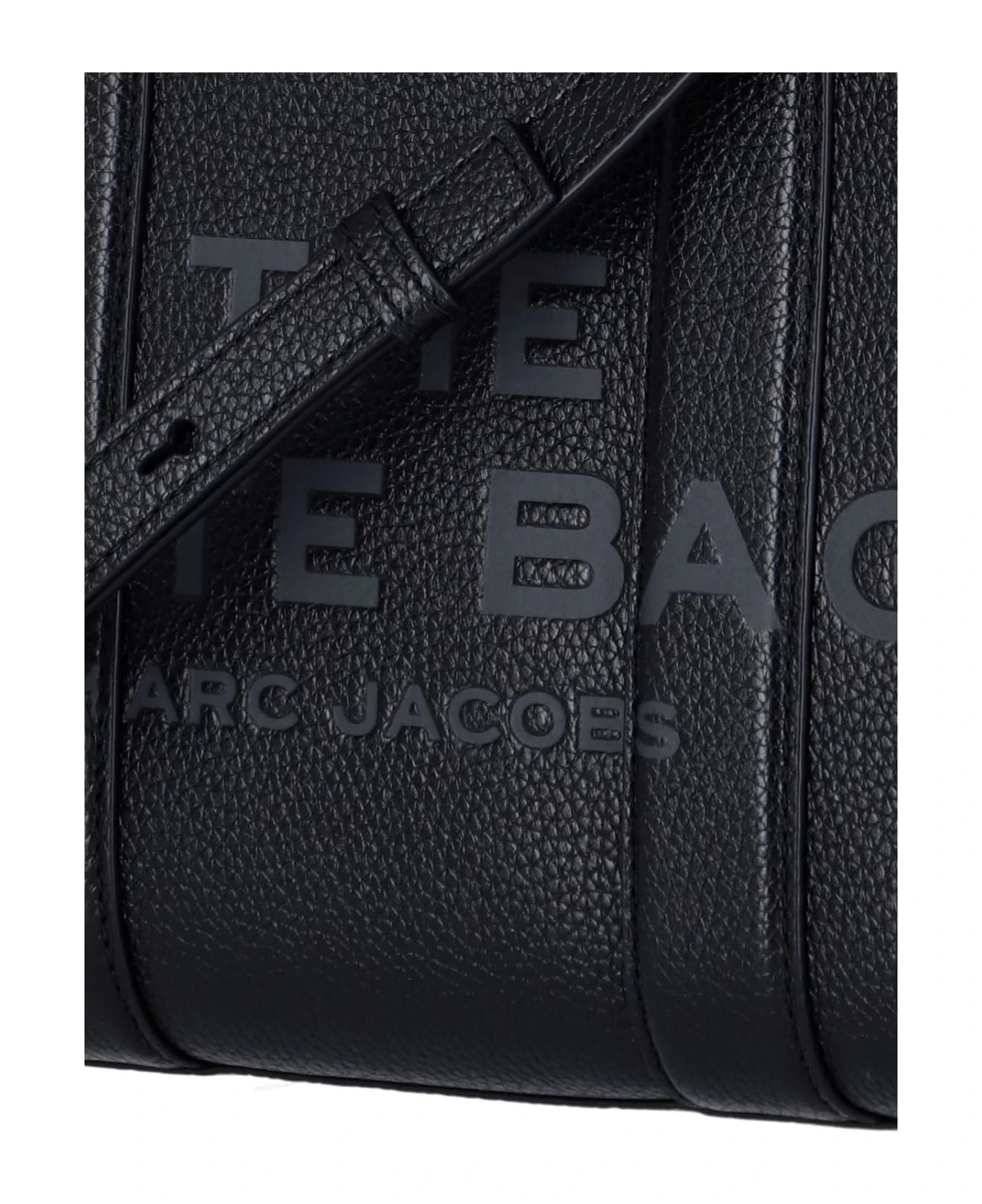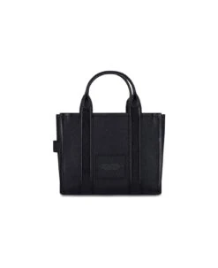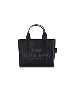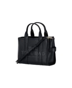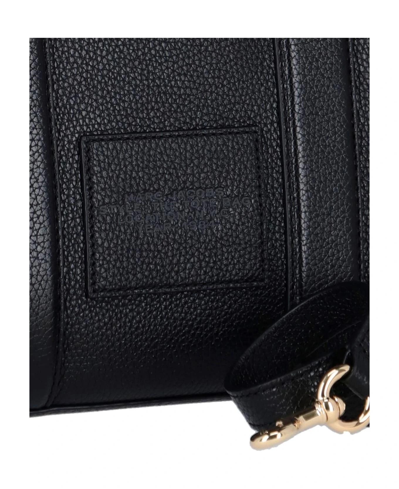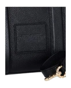 Marc Jacobs Mini Logo Tote Bag, made of leather, black, double rigid handle, adjustable and removable shoulder strap, zip closure, maxi logo engraved on the front, logo plaque. Autumn Winter 2022 2023, women’s bags.