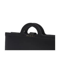 Marni black chain long Tropicalia wallet, logo on front, clip closure, inner zip pocket, 8 slot, chain fixed strap