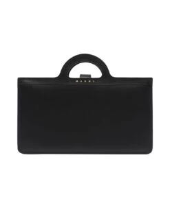 Marni black chain long Tropicalia wallet, logo on front, clip closure, inner zip pocket, 8 slot, chain fixed strap