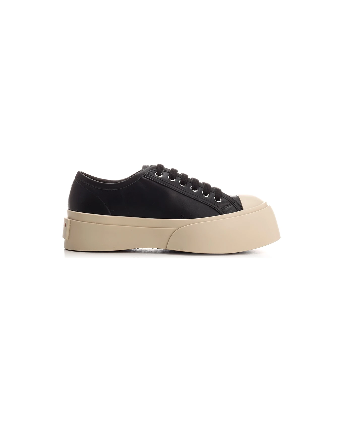 “Pablo” lace-up sneakers from Marni in black nappa with chunky rubber sole and rubber toecap.