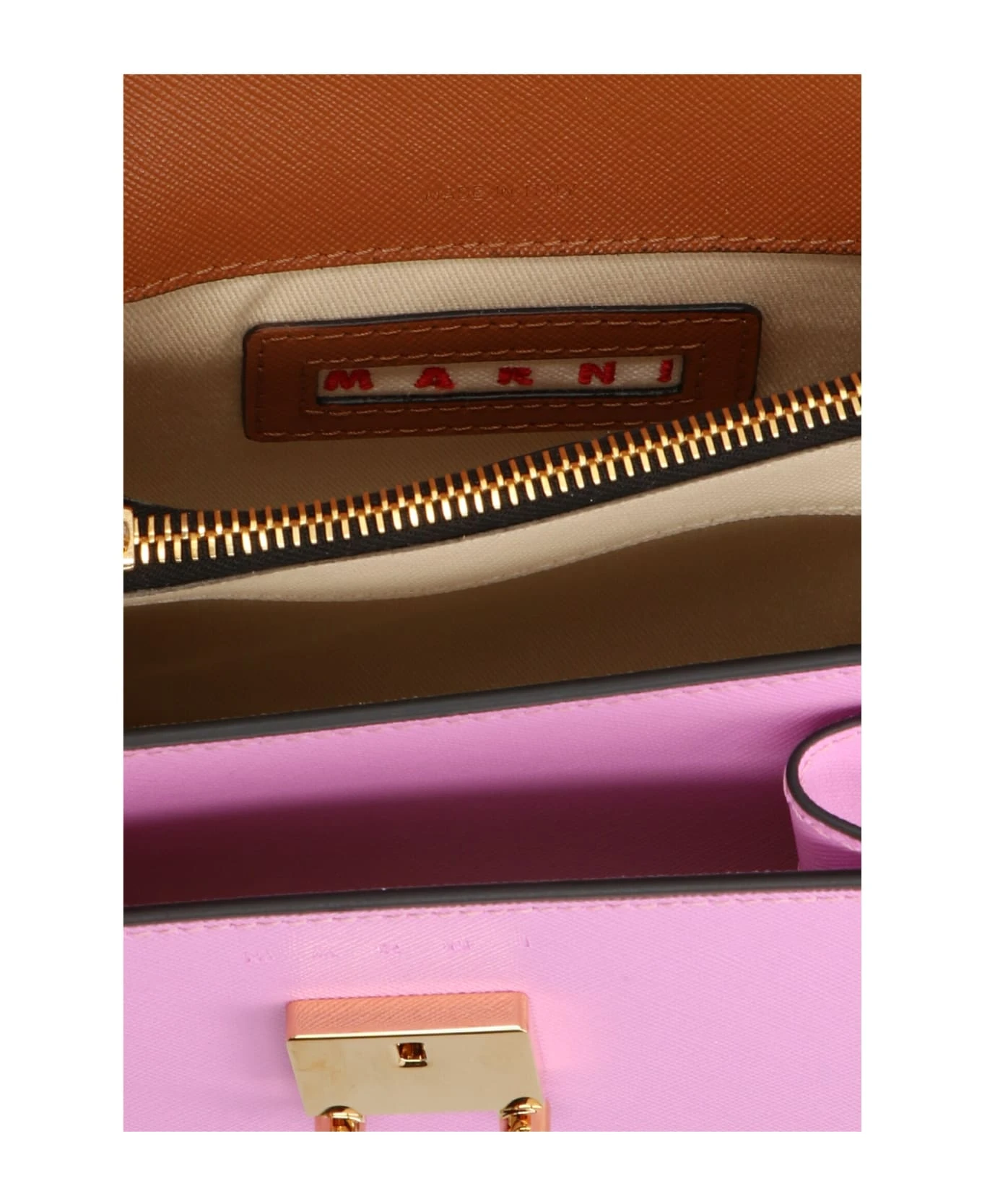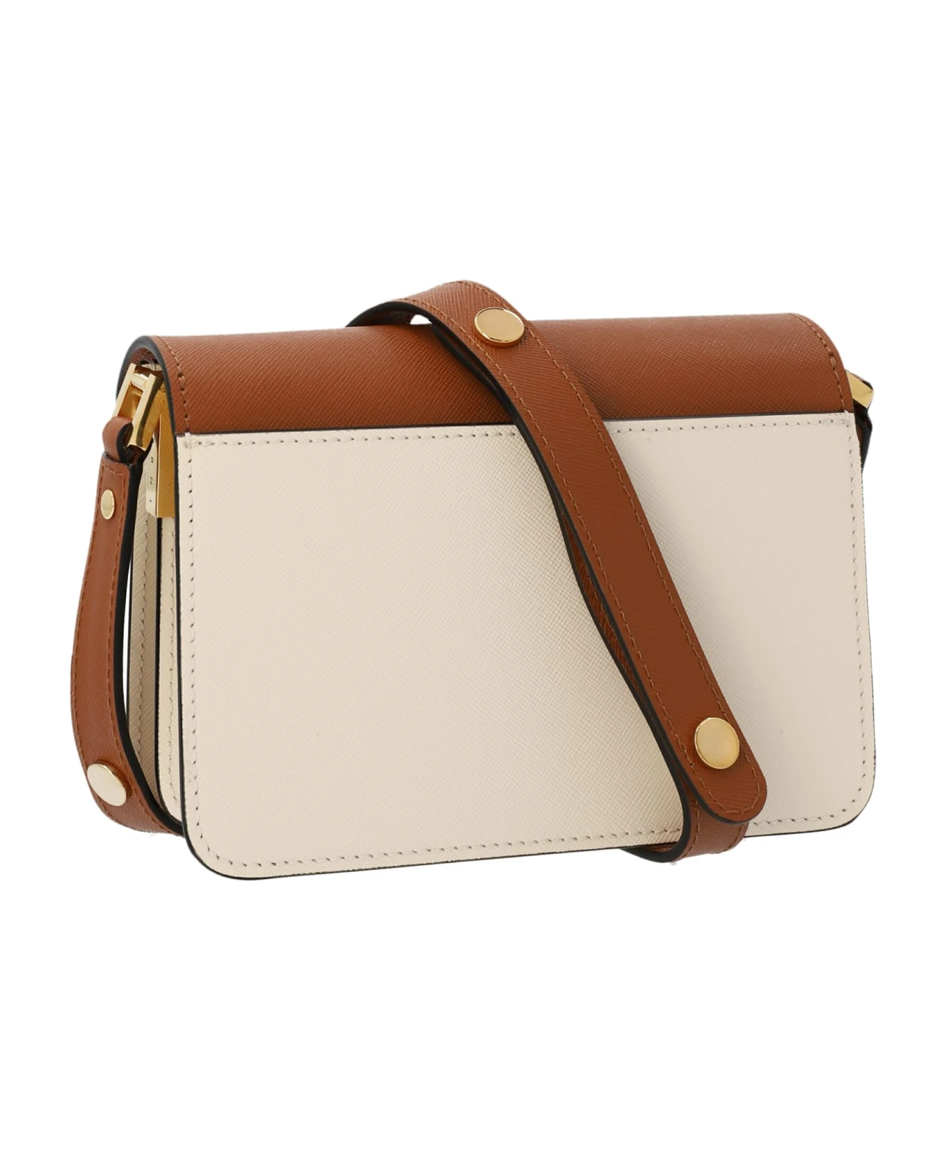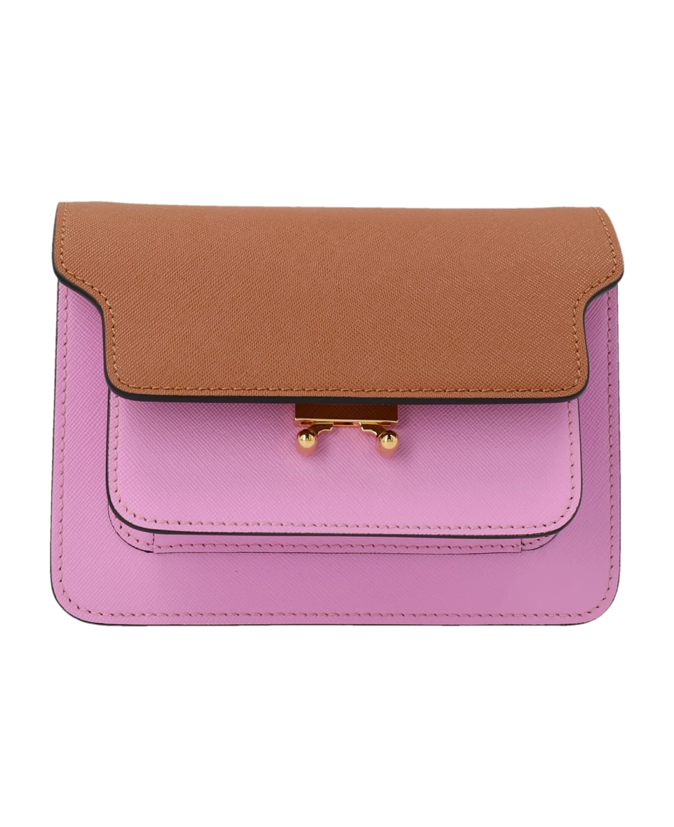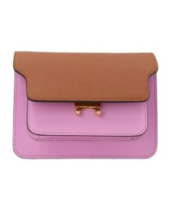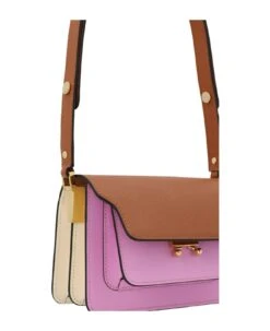 ‘Trunk’ colorblock leather shoulder bag with a flap click closure, an interchanging leather handle and metal details.