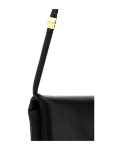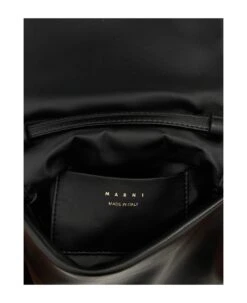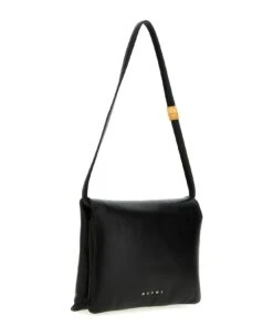 Plexiglasa Mini’ padded smooth leather clutch, with leather shoulder strap and a flap closure.