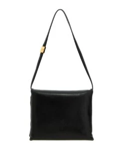 Plexiglasa Mini’ padded smooth leather clutch, with leather shoulder strap and a flap closure.