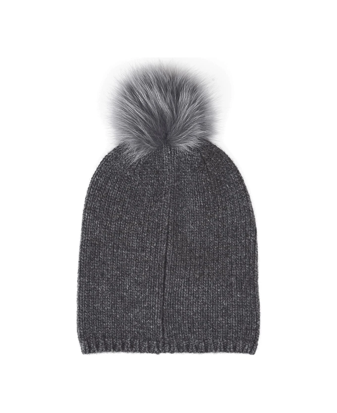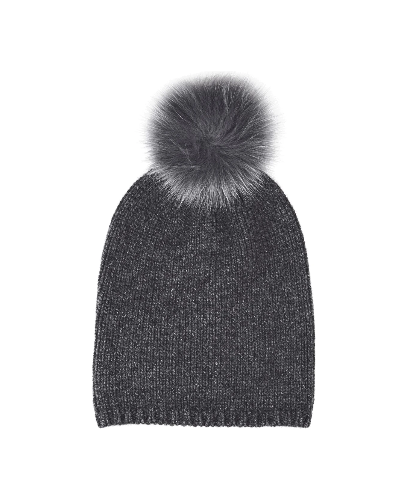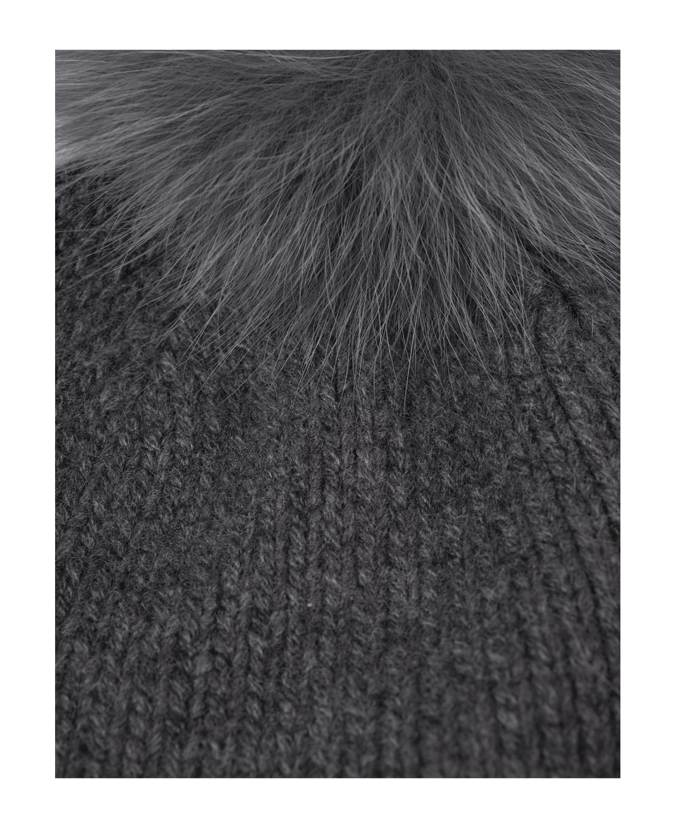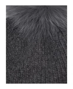 Nazione beanie by Max Mara made of pure grey knitted cashmere and embellished on the top with a tone-on-tone real fox fur pompom.
