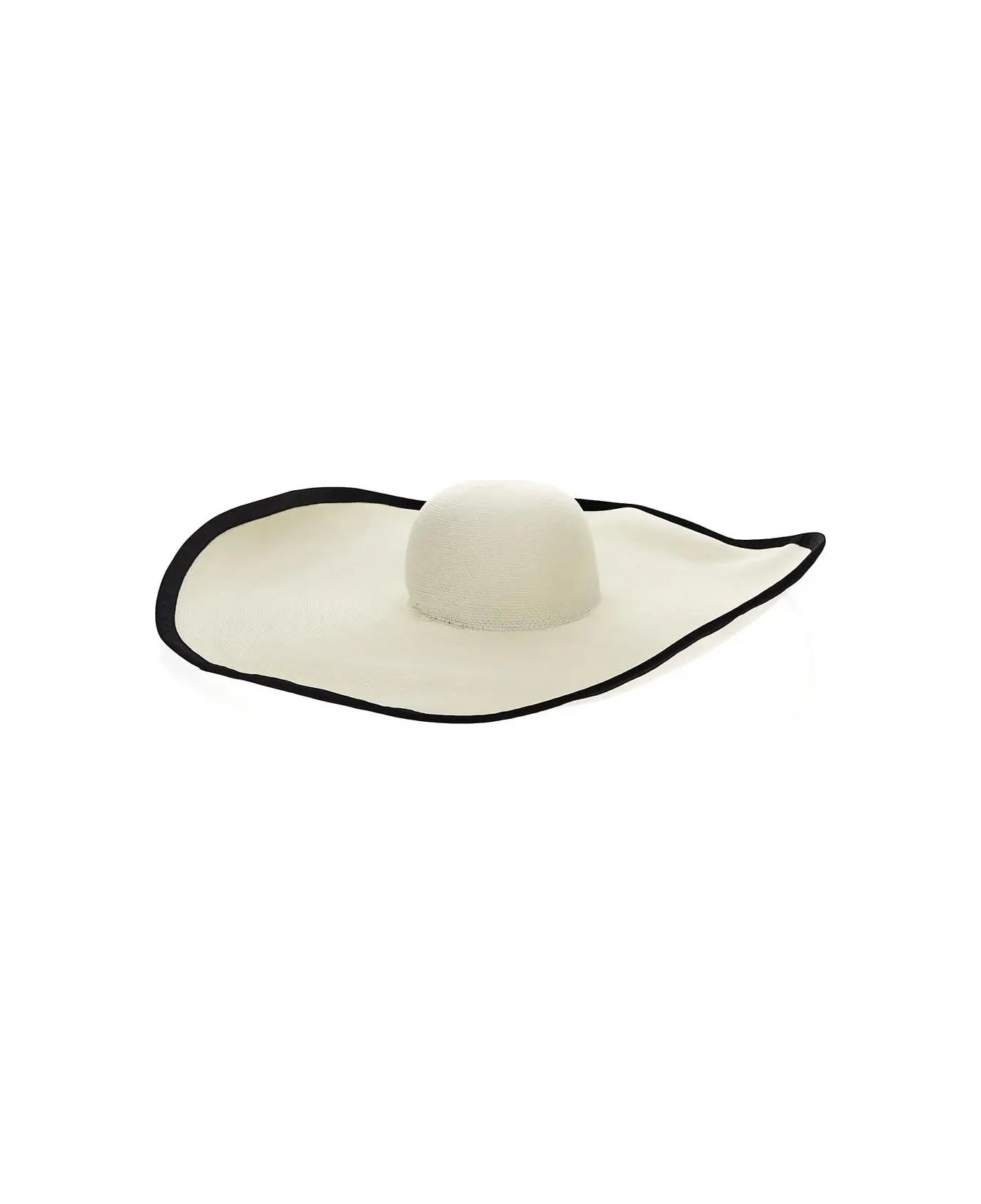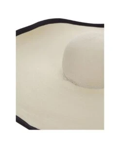 Max Mara wide-brimmed hat in white paper yarn with grosgrain edges in black.