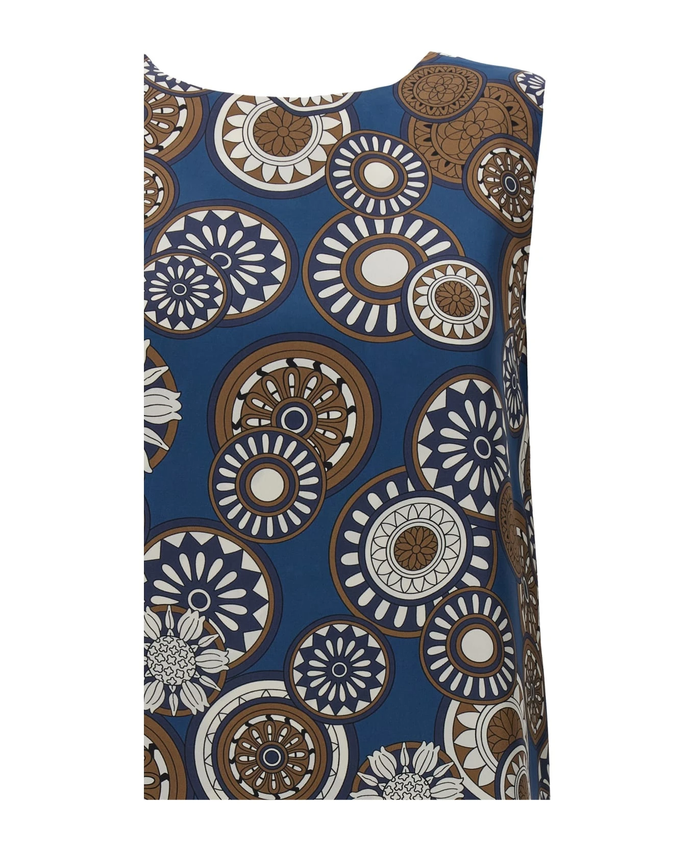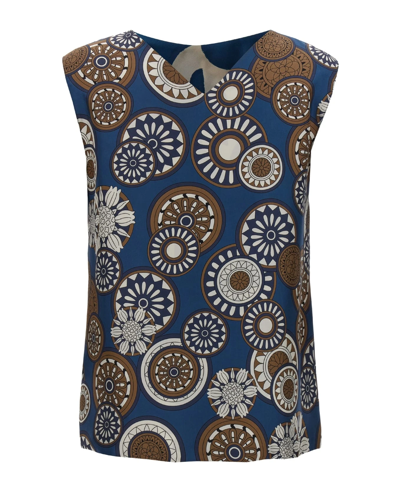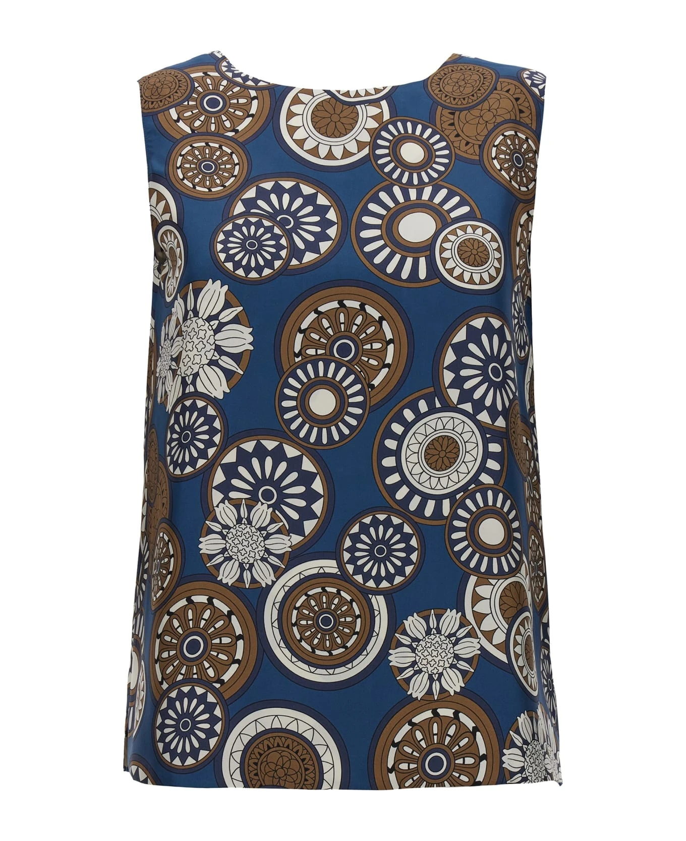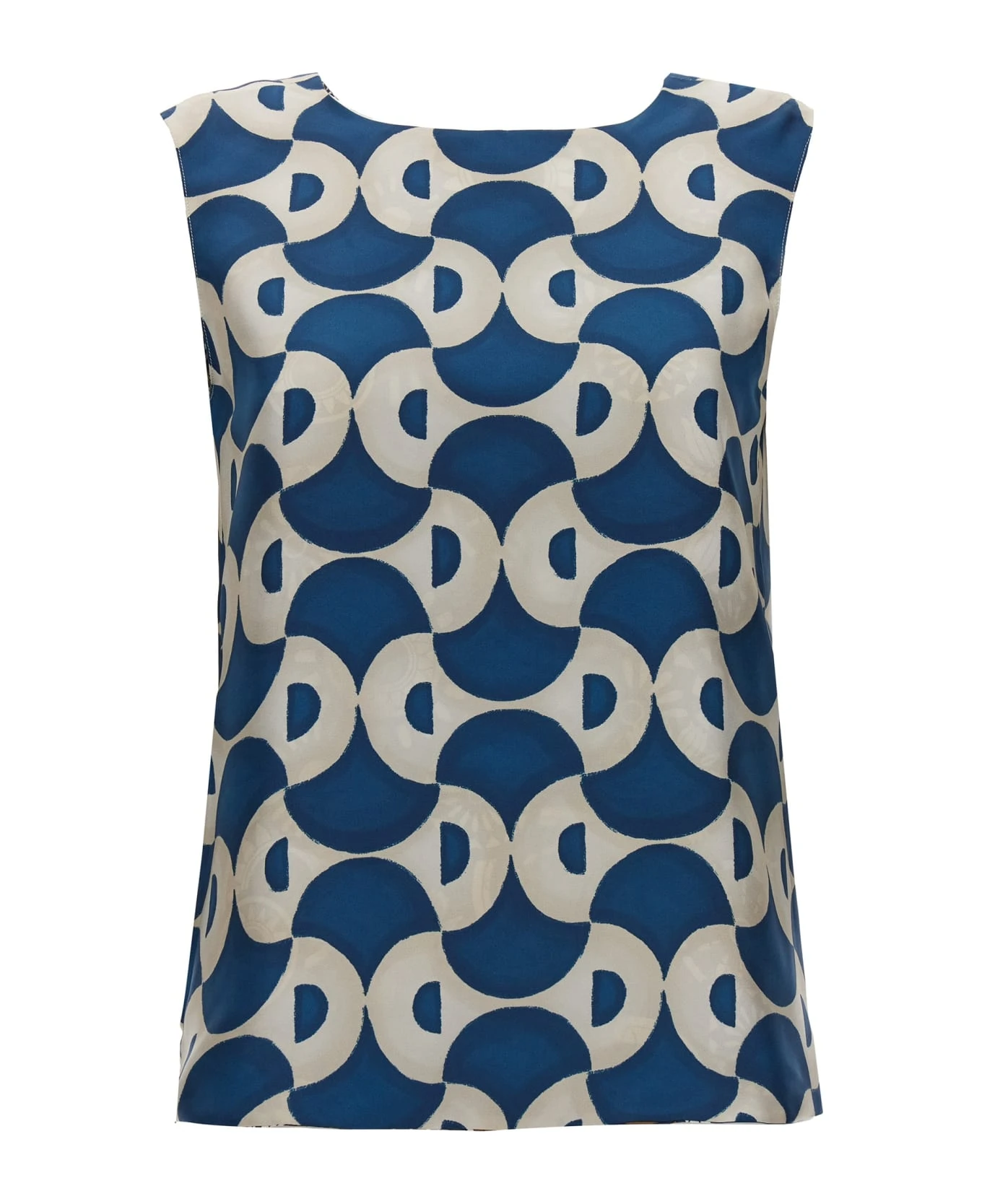 Time reversible sleeveless top in silk with pattern print and V-neck.