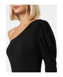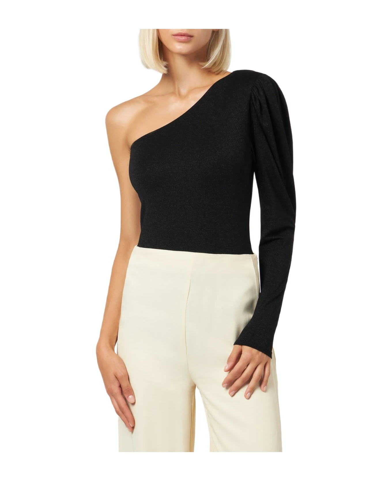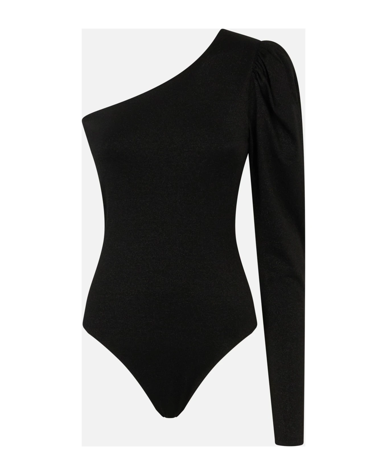 Bodywear and one piece swimsuit, one shoulder, knitted glitter black fabric, stretch fabric, lycra lining, regular fit. You can wear it as swimsuit in your summer beach and pool days, or as a bodywear to light your evenings.