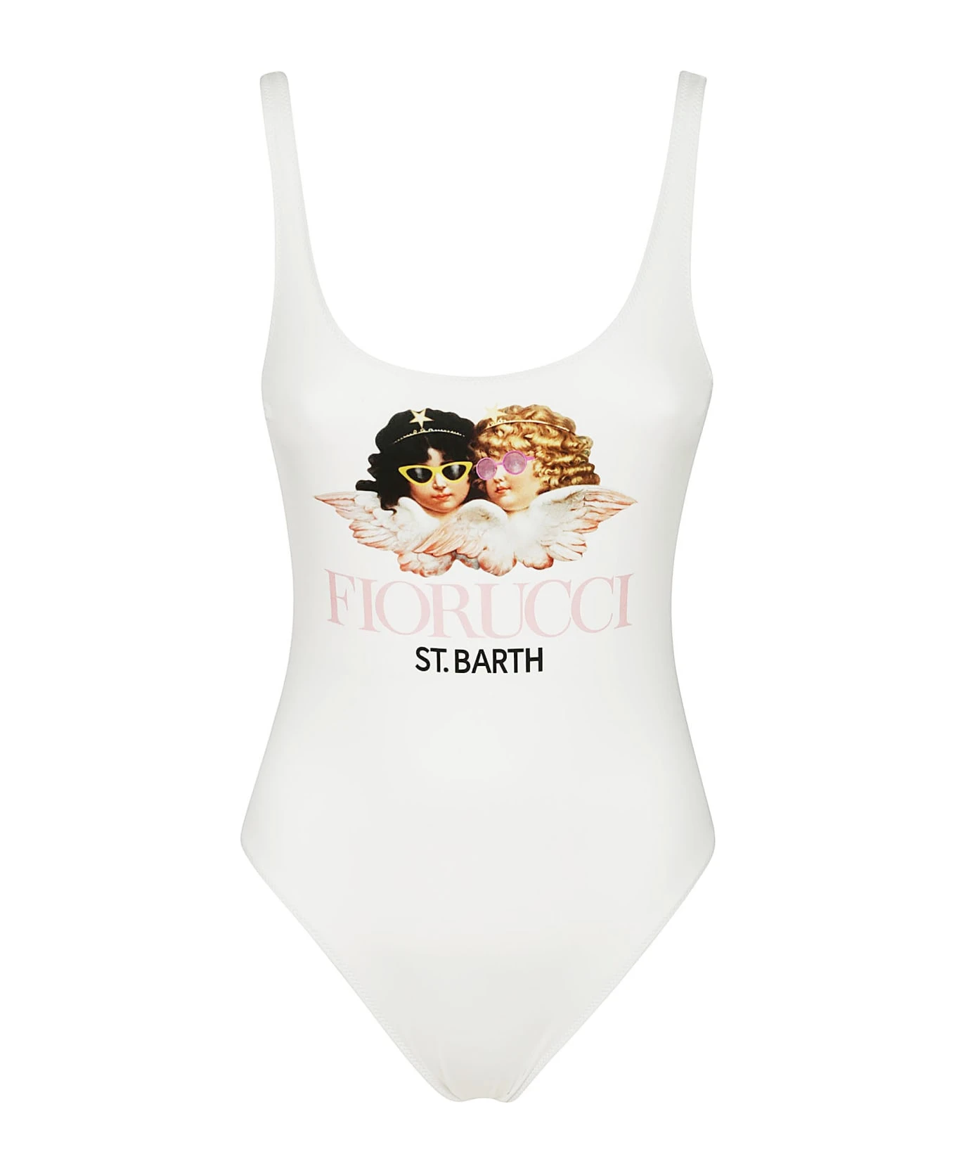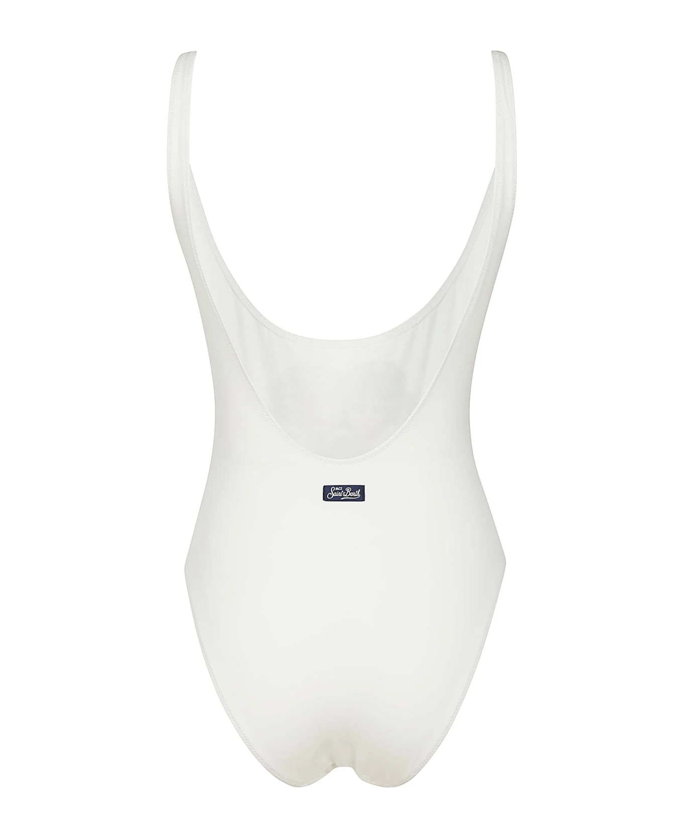 MC2 SAINT BARTH White one-piece swimsuit, front print, logo detail.