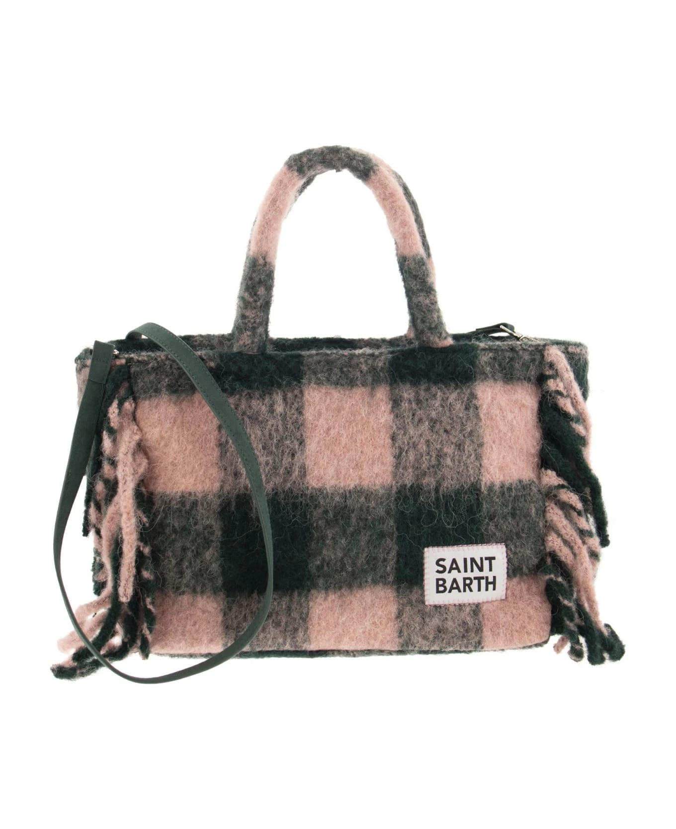 Printed fabric bag with fringes, a must-have for the winter season, practical thanks to the handles and shoulder strap for comfortable wearing. – Saint Barth logo badge on the front – Side fringes – Tartan pattern DESIGNER ID: COL0010 00075E