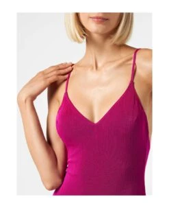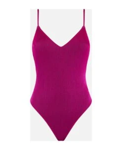 One-piece swimsuit with thin straps, stretch fit, regular fit, fuchsia fluo,