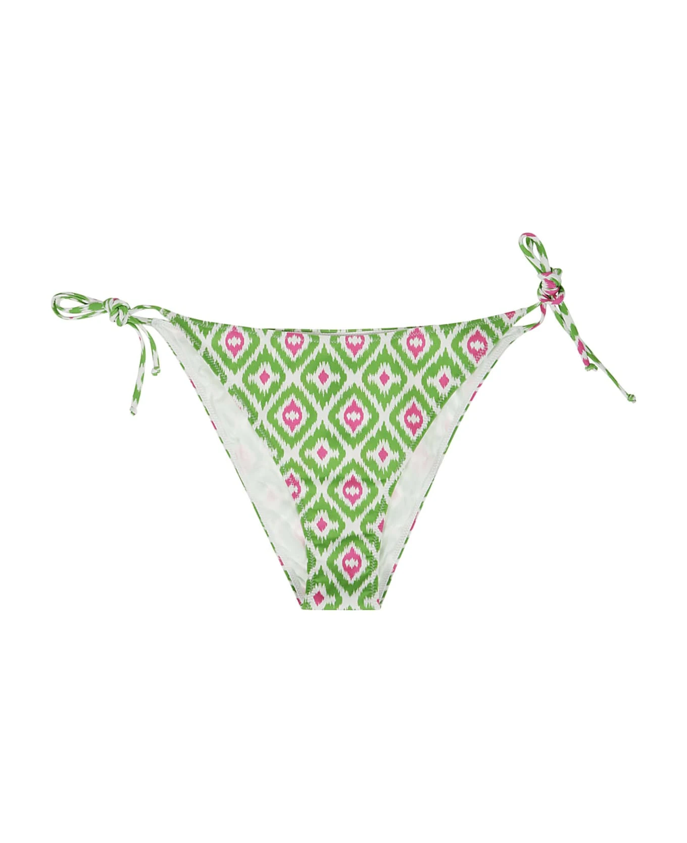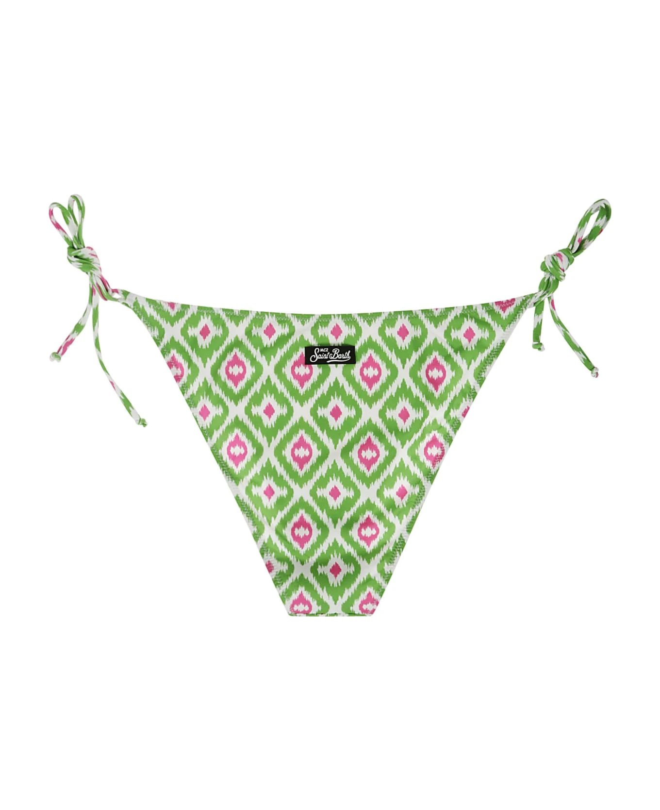 MC2 Saint Barth White sea slip, green and fuchsia pattern, lace-up closure.