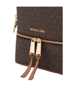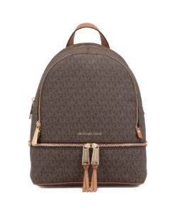Medium Rhea Backpack With Logo from MICHAEL Michael Kors: – Coated twill backpack with loged print all-over