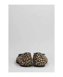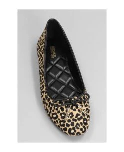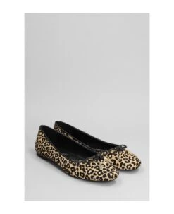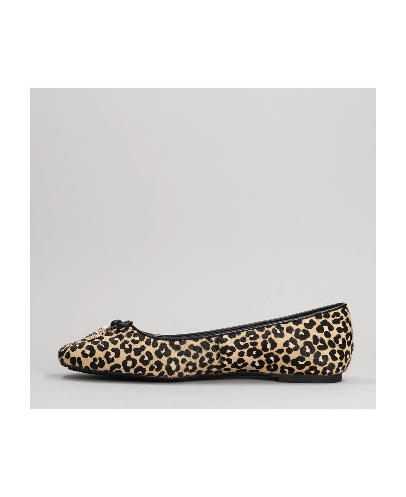 Nori Ballet flats in Animalier pony skin, almond toe, animalier pattern, bow detail, 100% pony hair, leather sole, Made in China