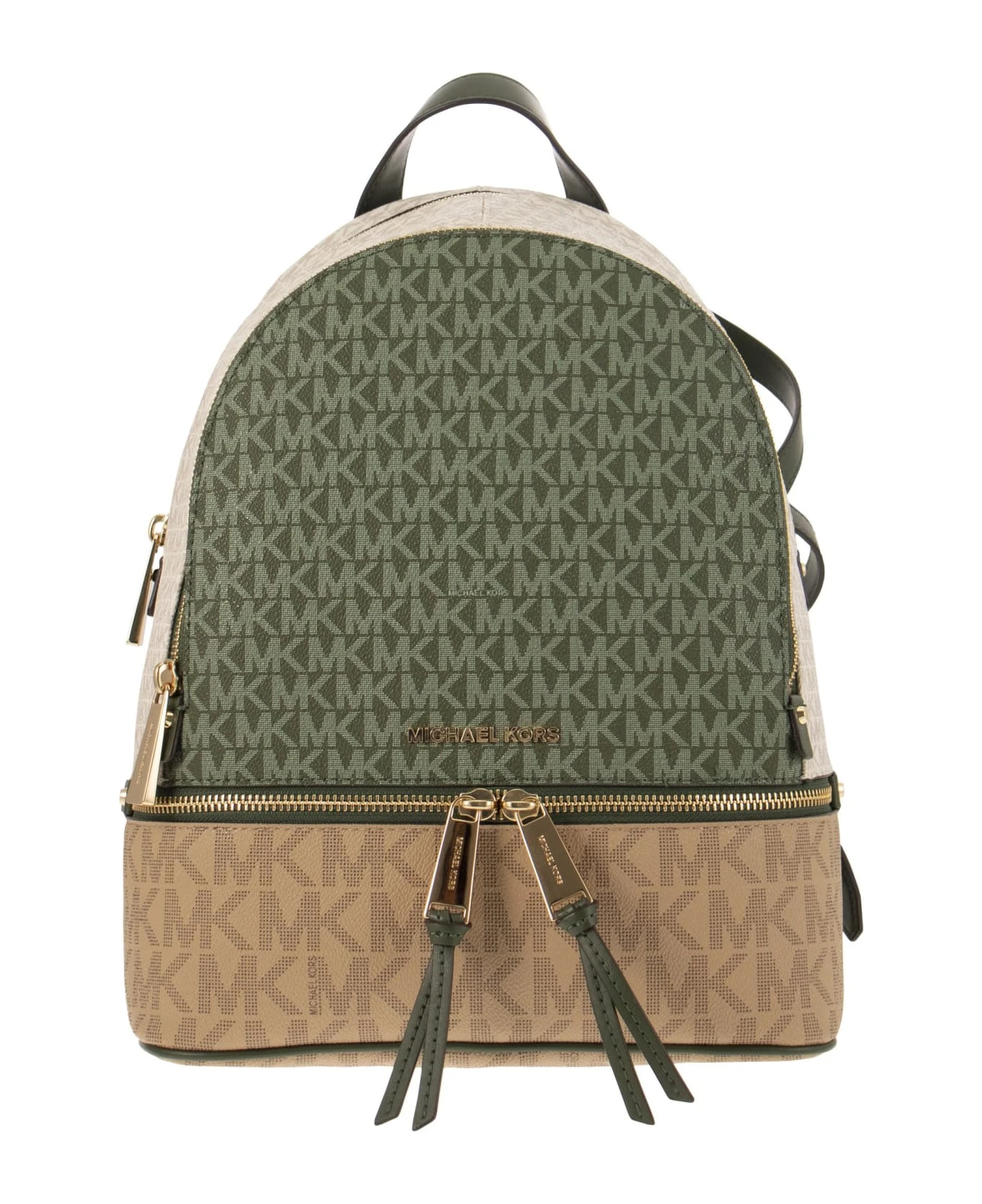 Casual and luxury meet in the Rhea backpack, which redefines the idea of a metropolitan accessory. The fashion house loves the combination of the colour block twill print with logo and elegant metal details. With its many zipped pockets and soft shoulder straps, it’s a trendy take on a durable model. – Logo-printed canvas – Gold-tone metal details – Outer details: 2 front zipped compartments – Interior details: back zipped pocket, back pouch pocket, 4 front pouch pockets – Zipped closure DESIGNER ID: 30S0GEZB2V 985