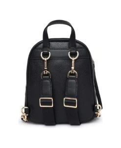 Top handle, logo appliqué on the front, zippered pocket and chain on the front, a zip closure, inner slit pocket, adjustable and removable shoulder straps n18 x 20 x 8 cm