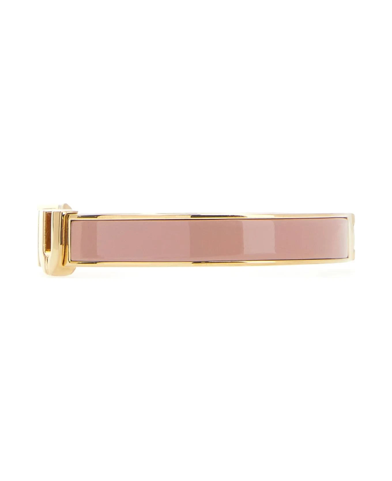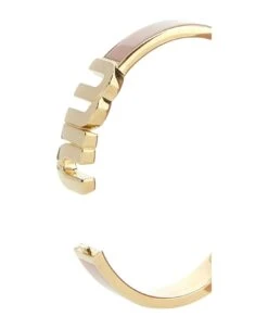 Rigid bracelet realized in enameled metal characterized by metal lettering logo.