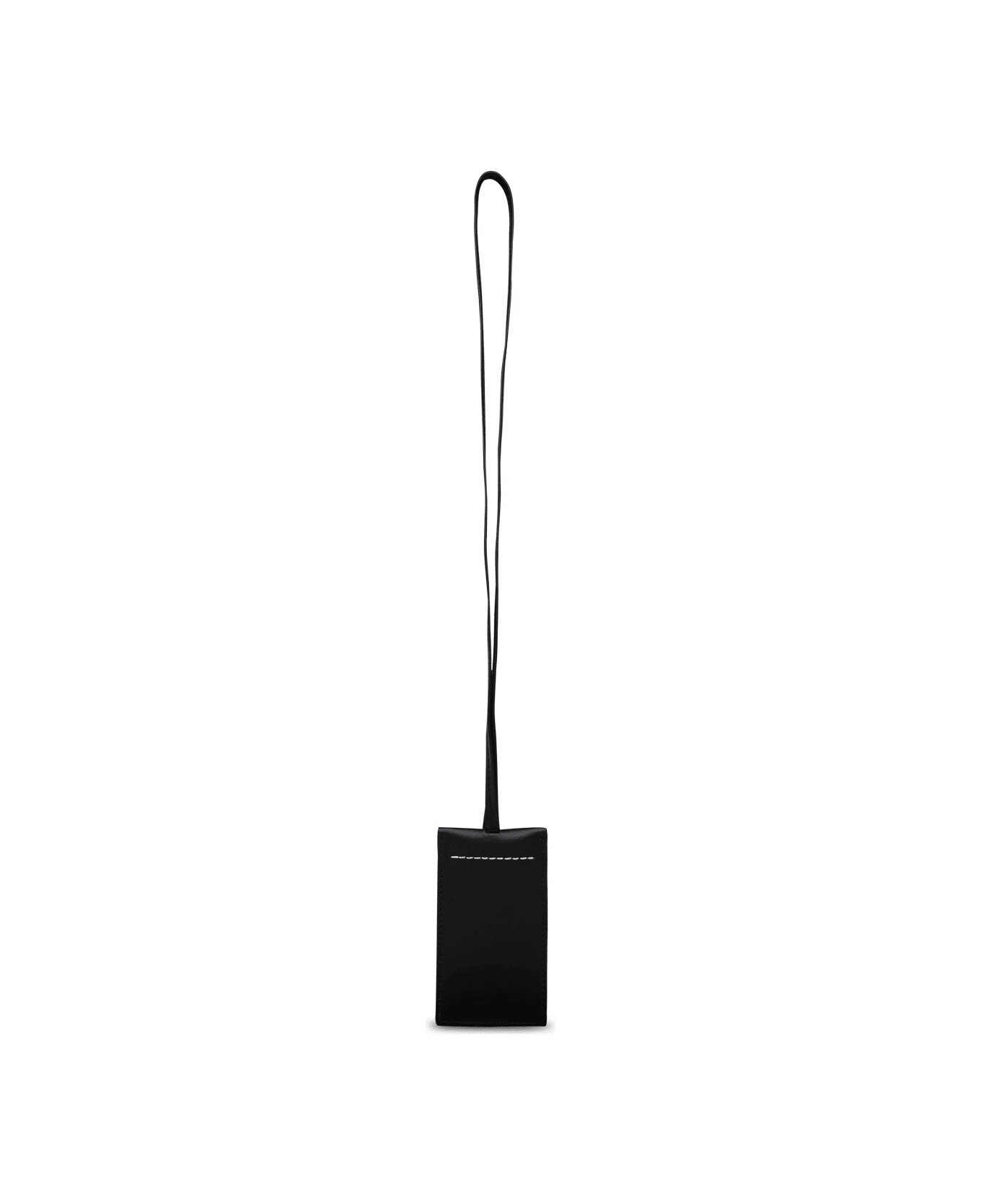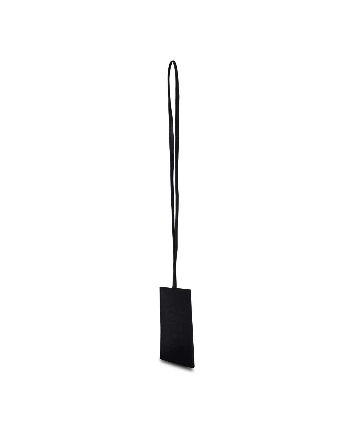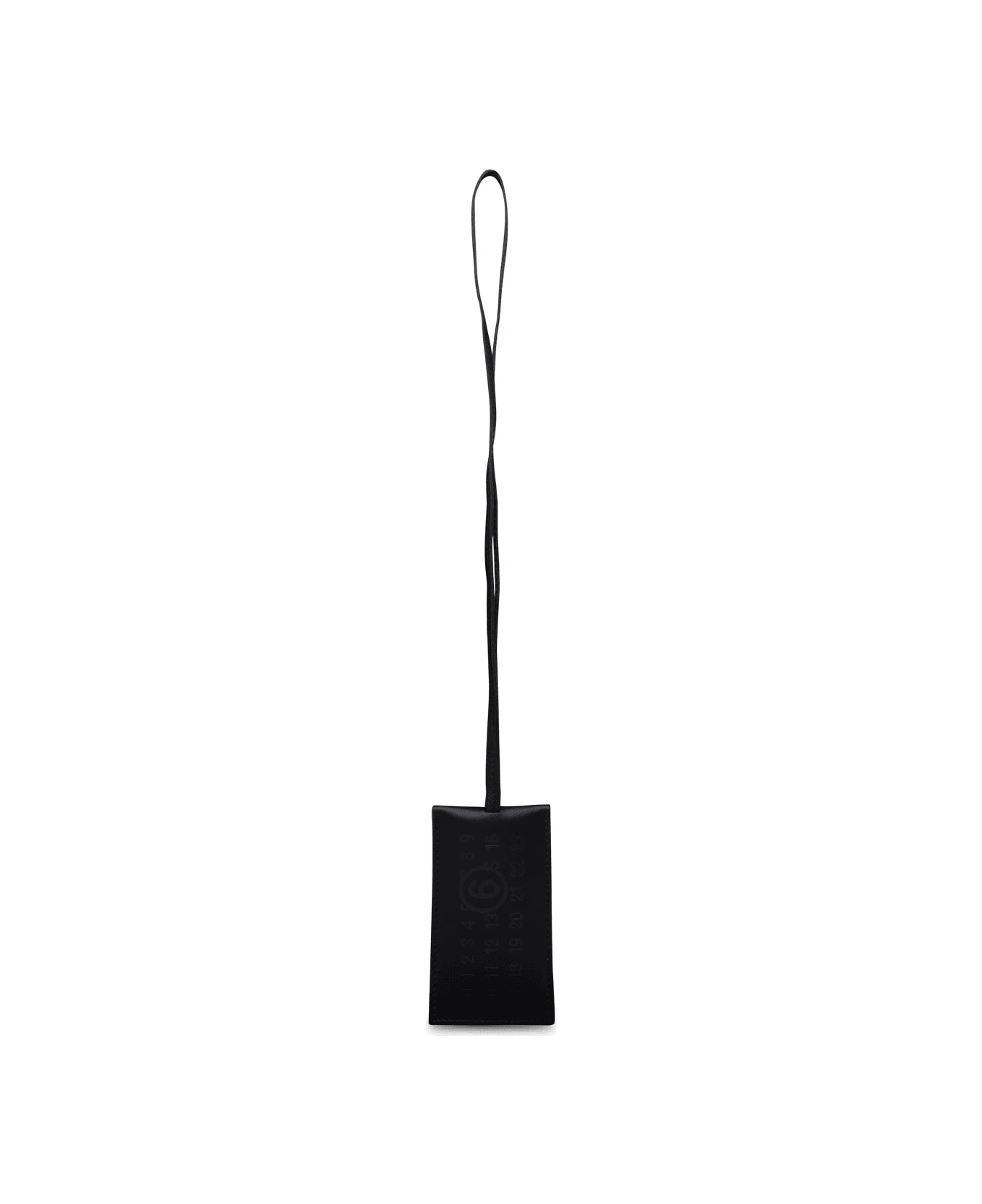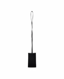 Tone-on-tone logo print, leather lacing with silver metal removable ring n11. 5 x 6 cm