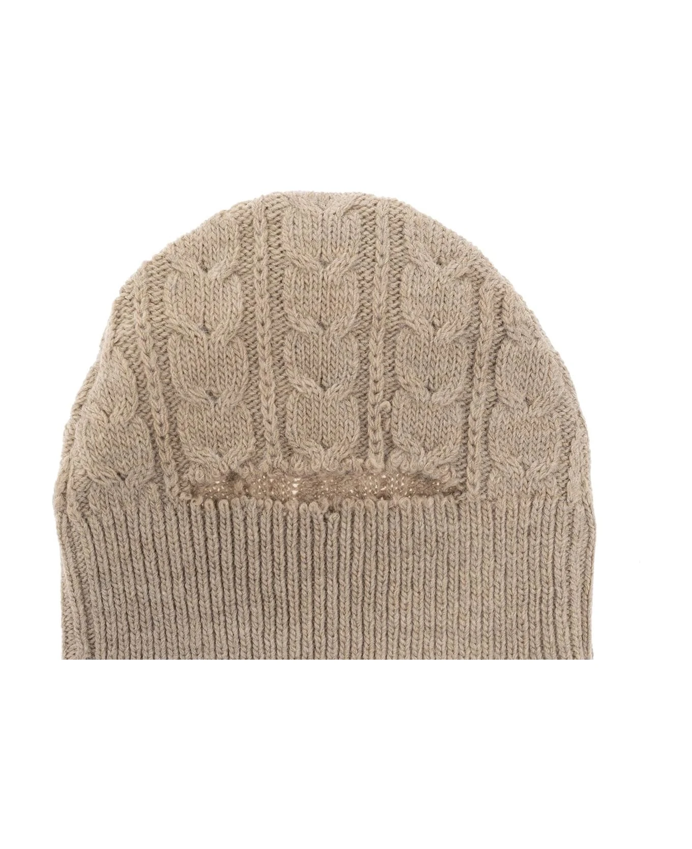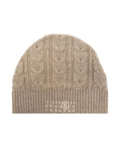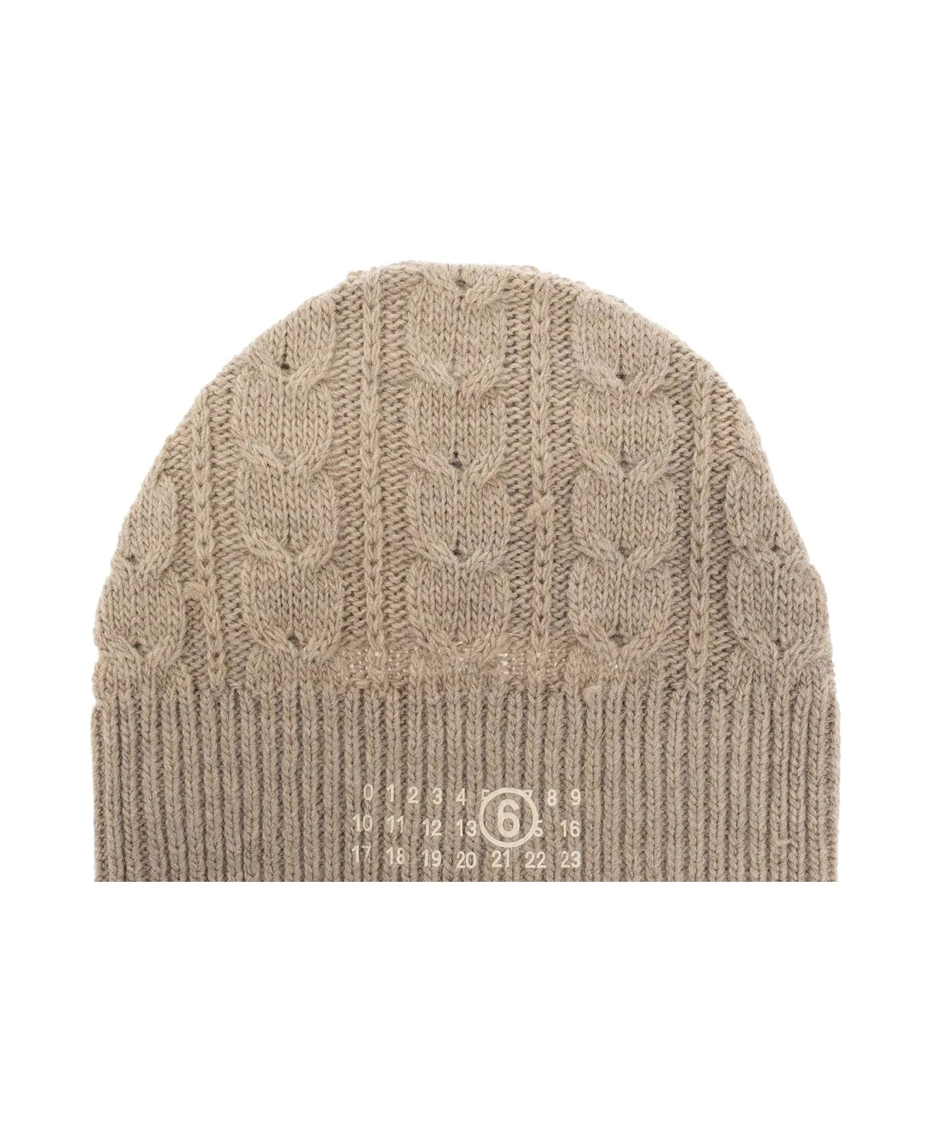 Beige beanie from MM6 Maison Margiela. Made from a wool blend, this item features a logo print and cut-out detailing with distressed effects.