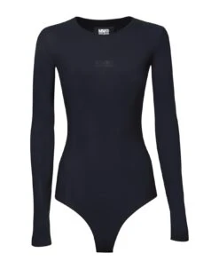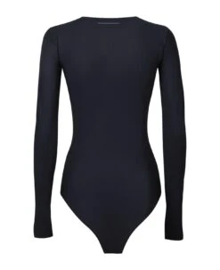 Roundneck. Long sleeves. Elasticated design. Slim fit. Tonal stitching. Press-stud fastening. Color: black