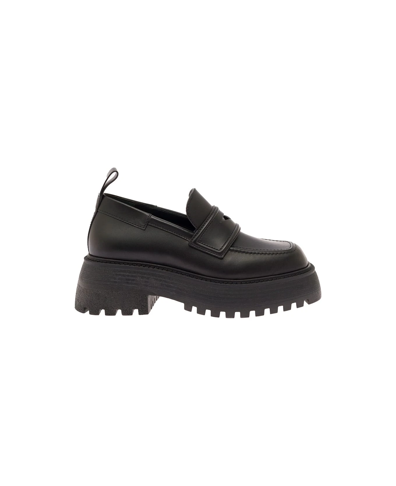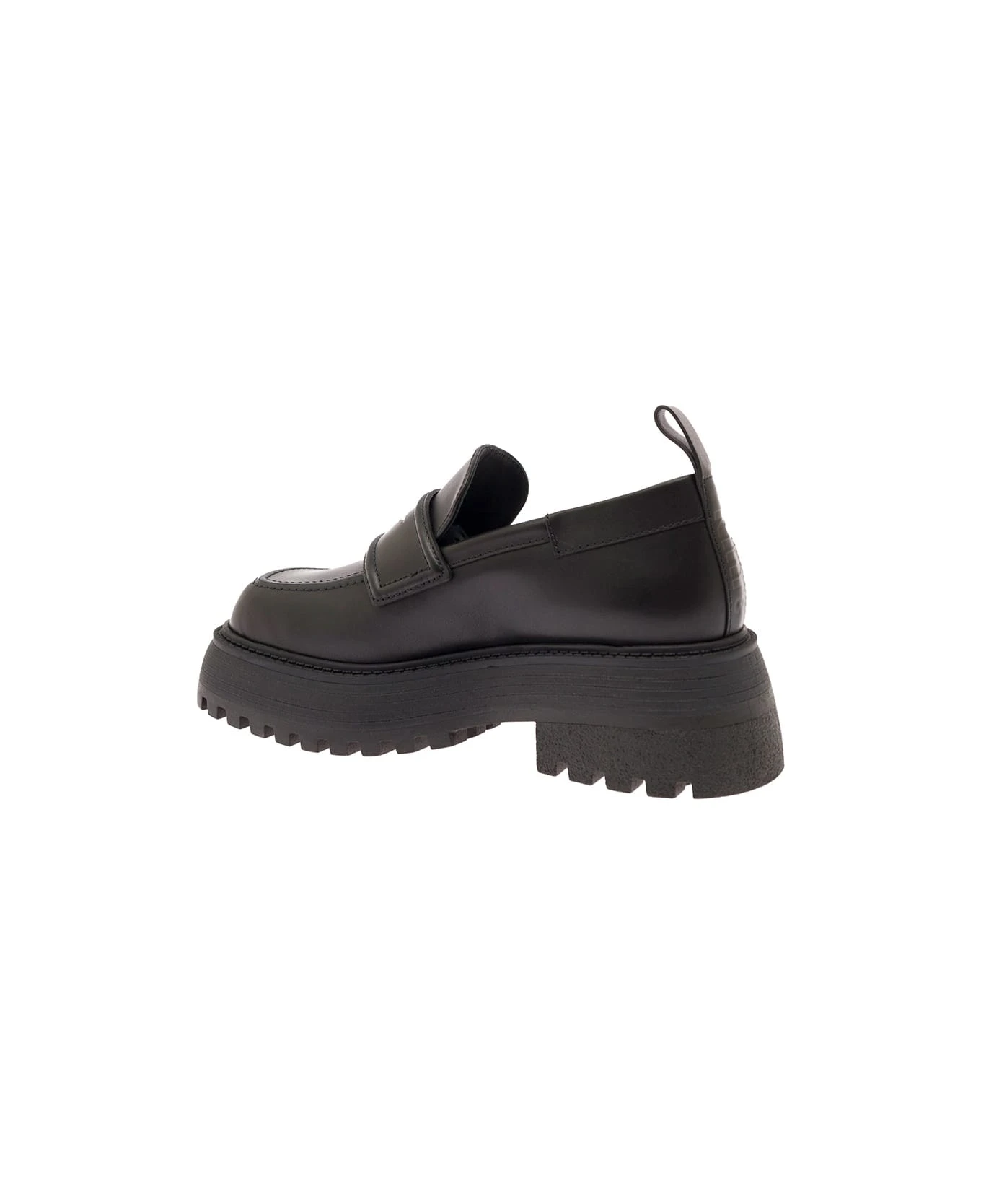 MocassinoNeroPelleMascherina con taglio a diamanteSuola rialzata 40mmLinguetta sul tallonePlateau: 4cmTacco: 6,5cm