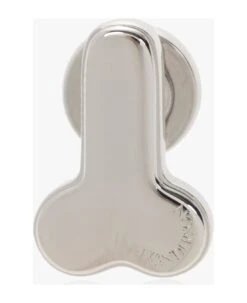 Silver-tone mono earring from JW Anderson. Made of brass, this item secures with a push back closure and showcases an engraved logo.