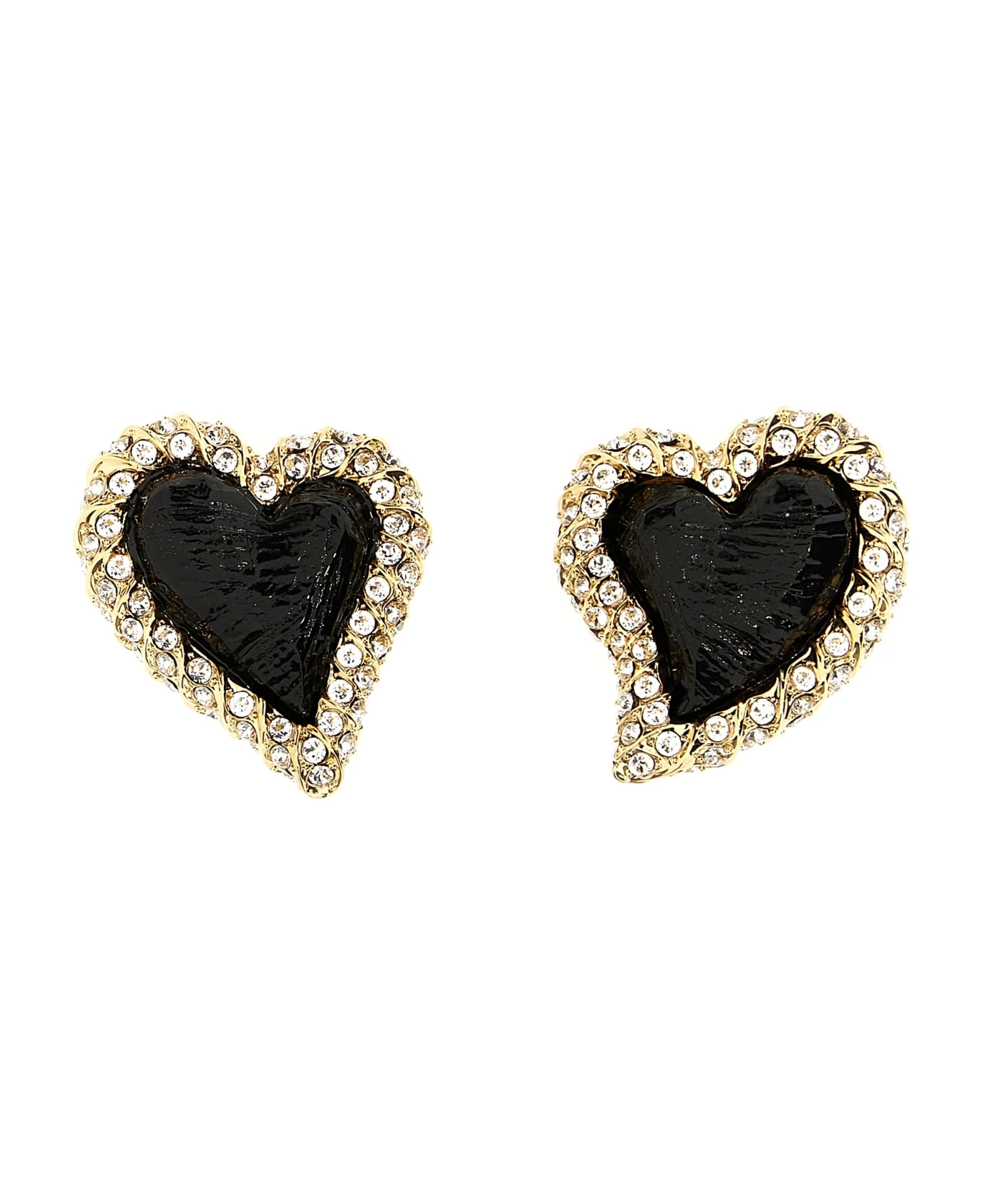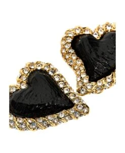 ‘Hearts’ earrings in gold metal and resin with crystal application. ITEM CANNOT BE RETURNED