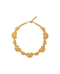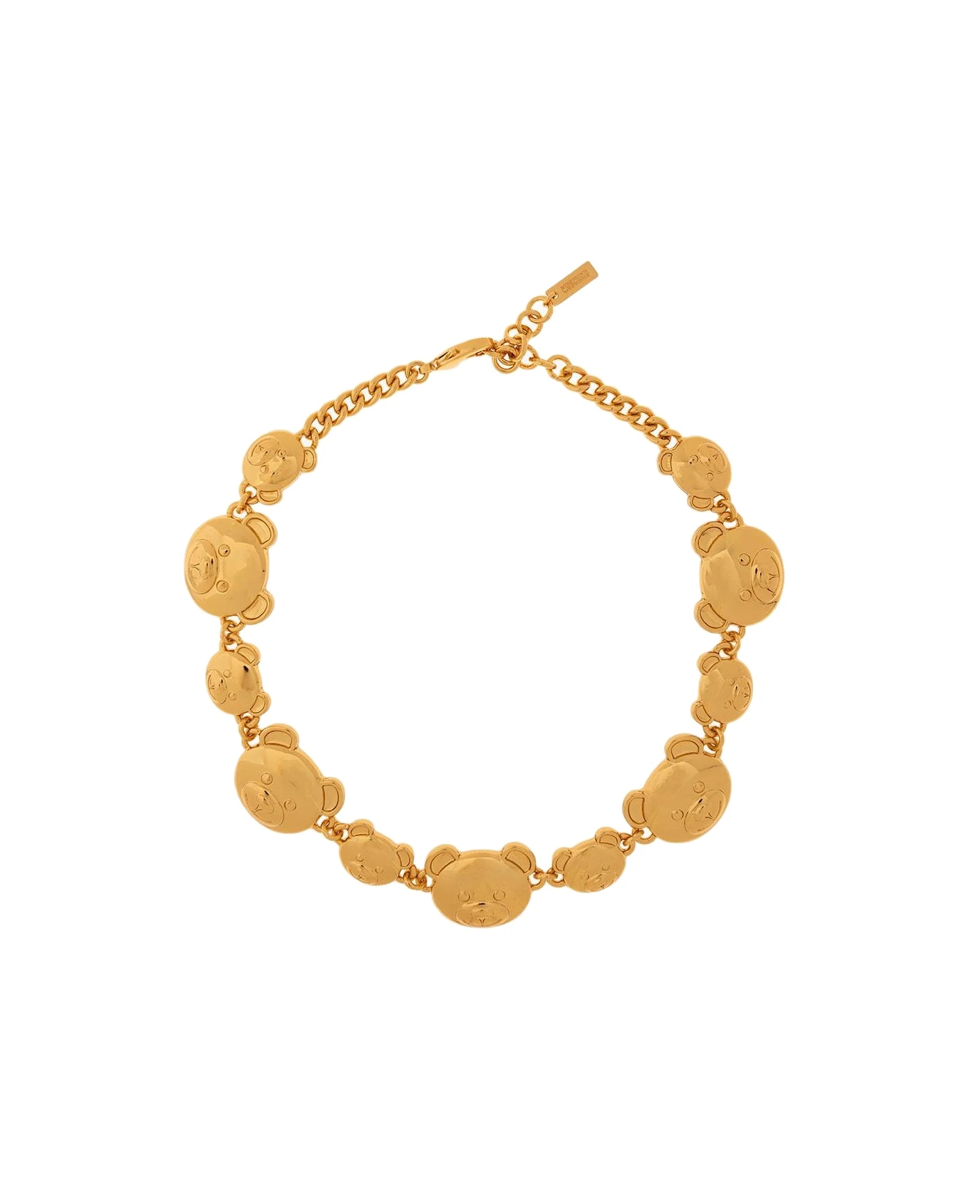 Gold-tone necklace from Moschino. Distinguished by the brand’s signature teddy bear pendants, this item features an adjustable lobster clasp fastening with a logo-engraved plaque.