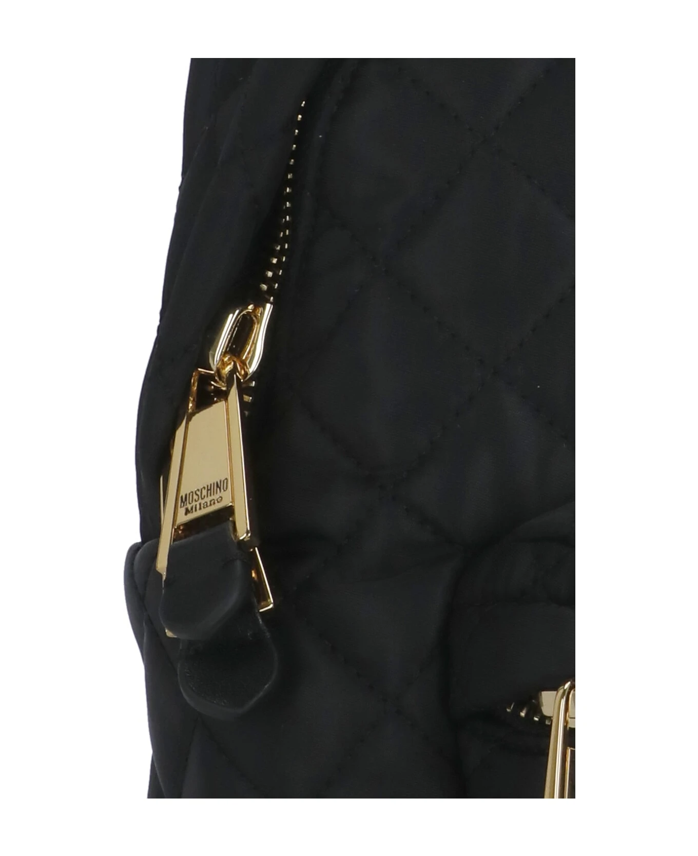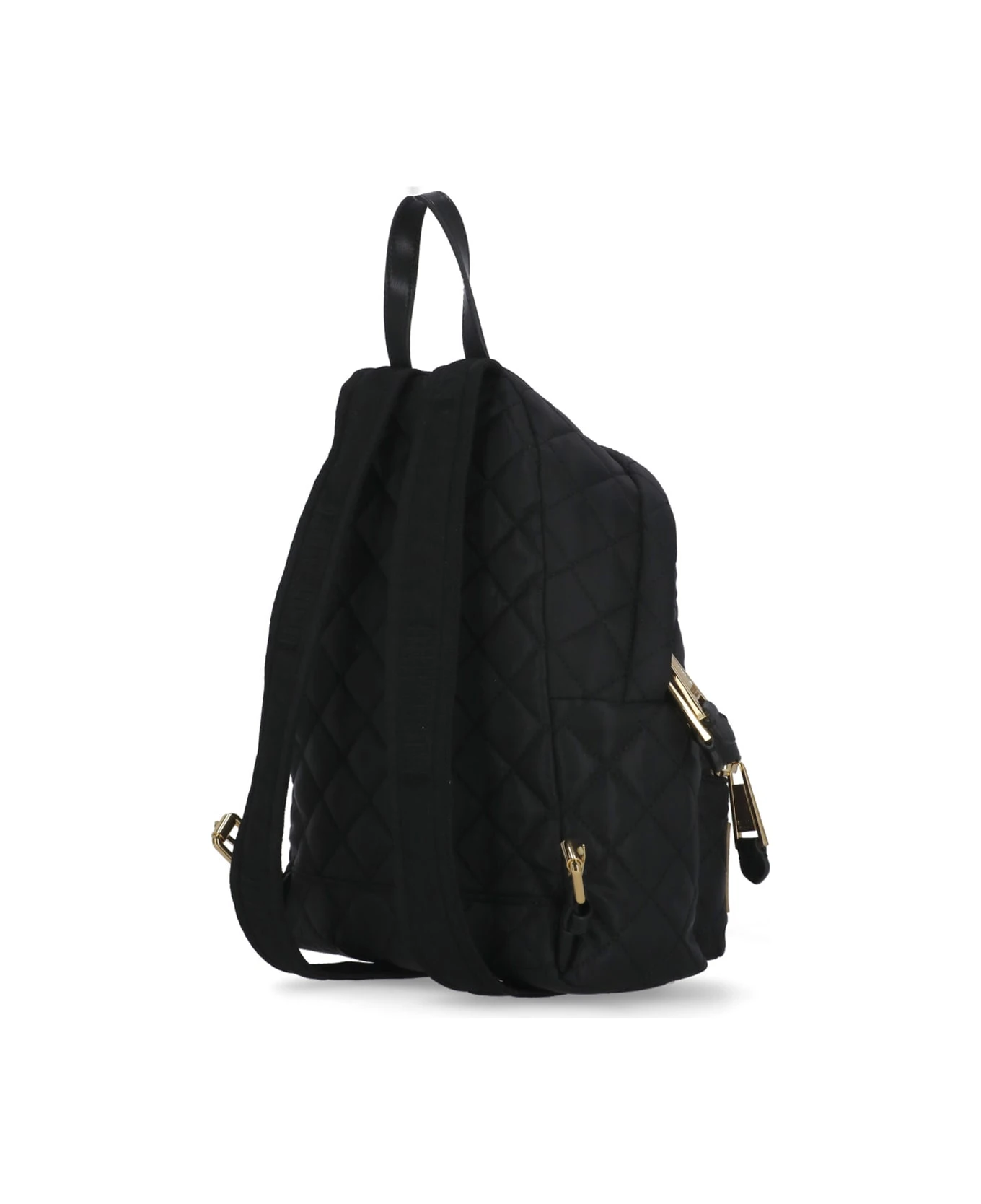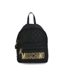 Quilted Backpack With Logo from Moschino: – Black Moschino quilted fabric woman’s backpack