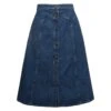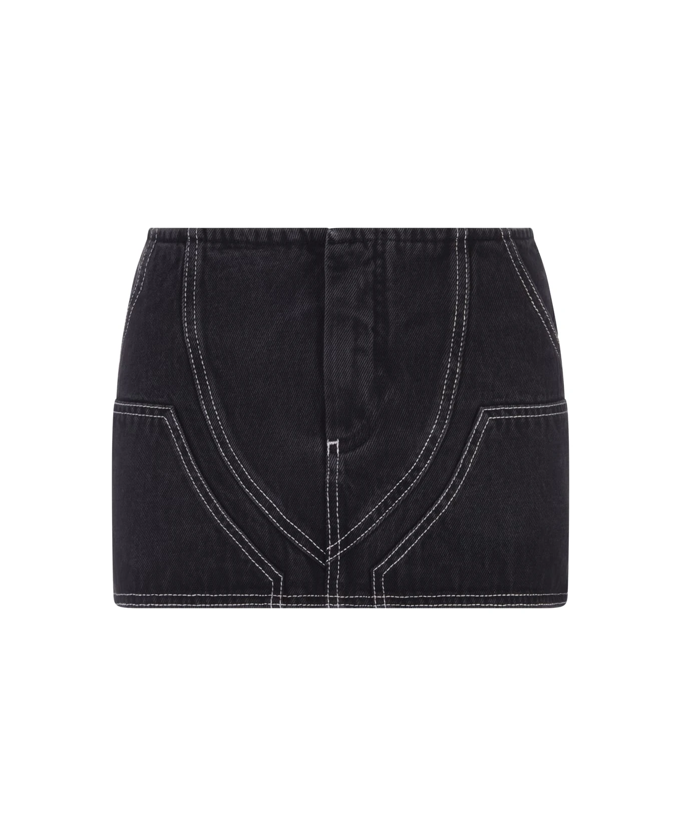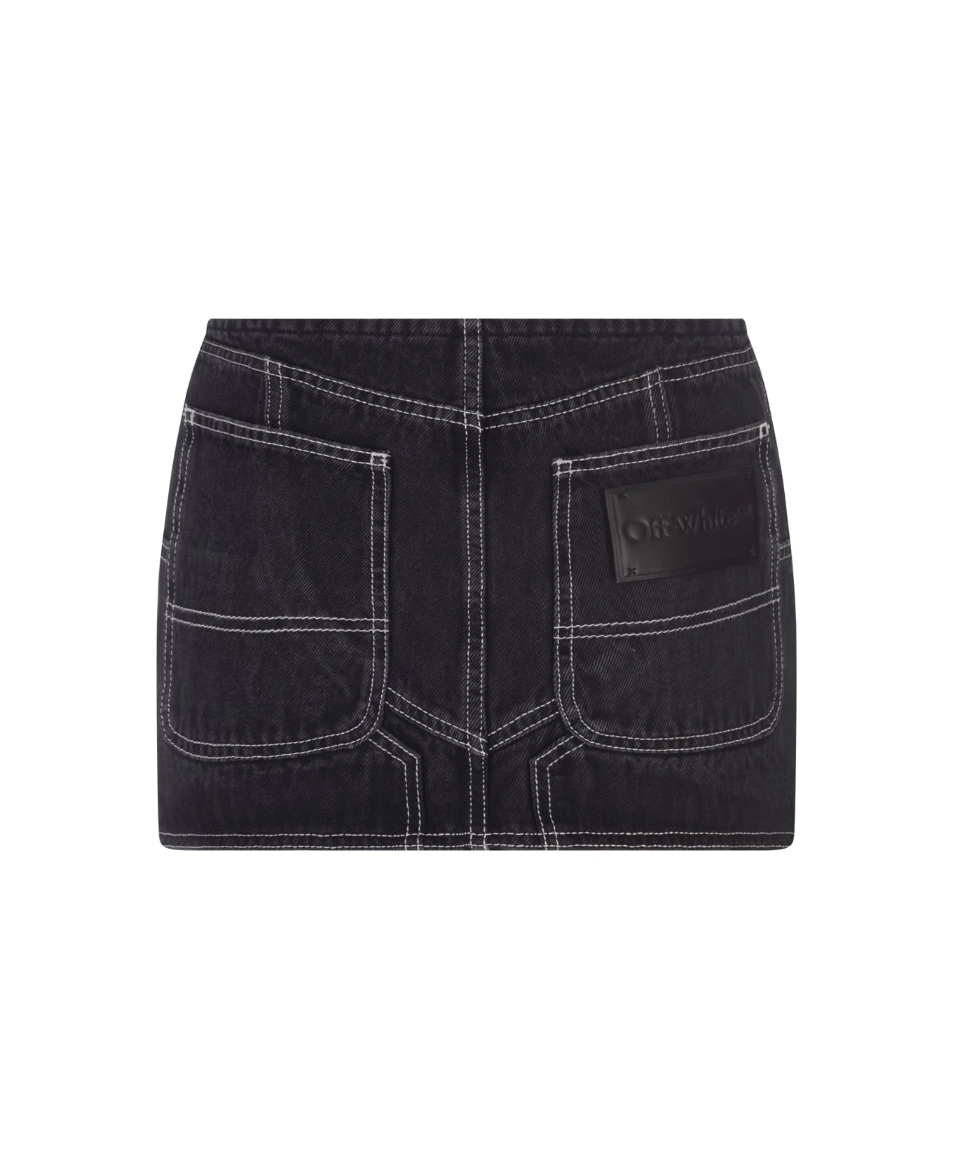 Off-White mini skirt made of black denim with contrasting stitching and covered front closure.