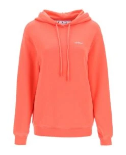 Off-White hoodie crafted in cotton french terry with contrasting lettering logo print on the chest. Hood with drawstring. Micro ribbed cuffs and hem. Regular fit. The model is 177 cm tall and wears a size XS.