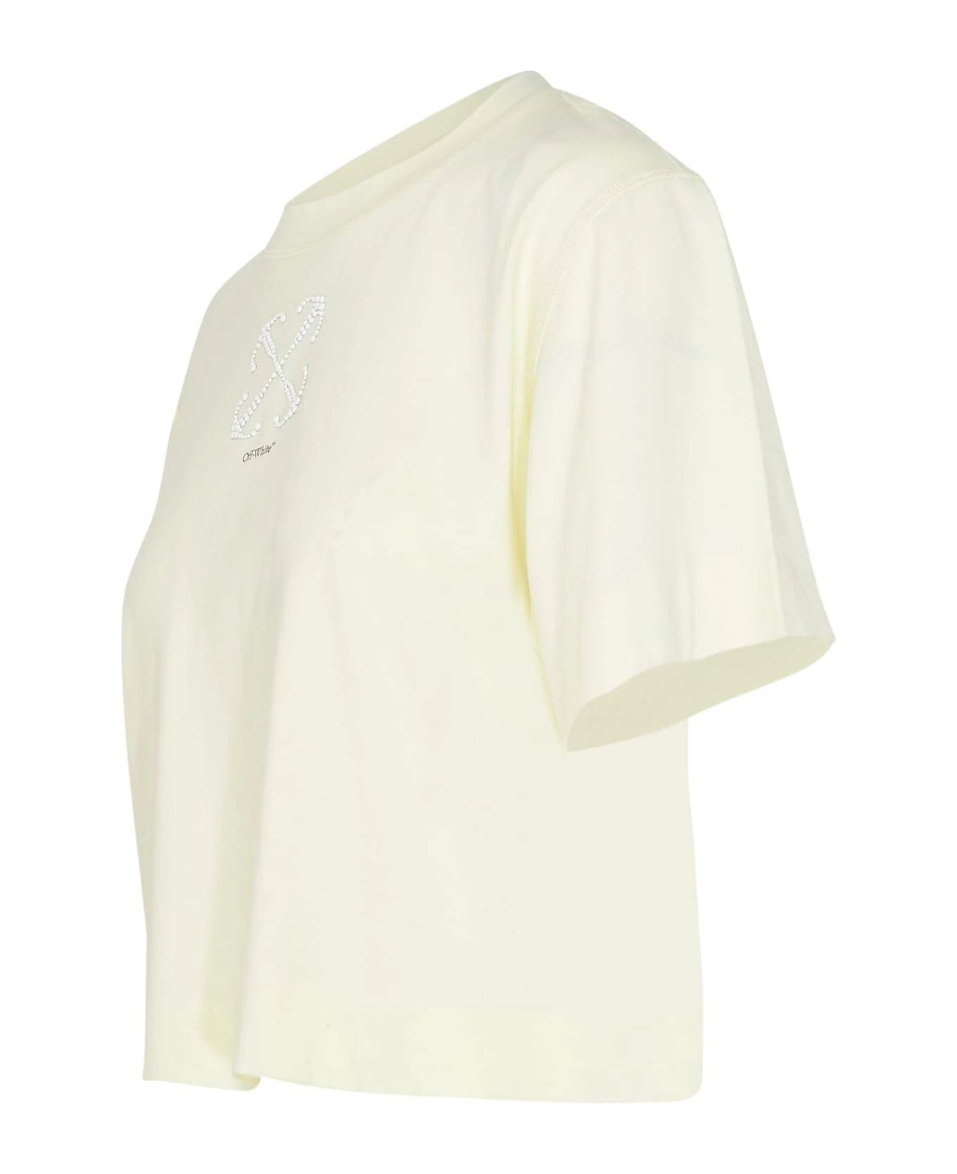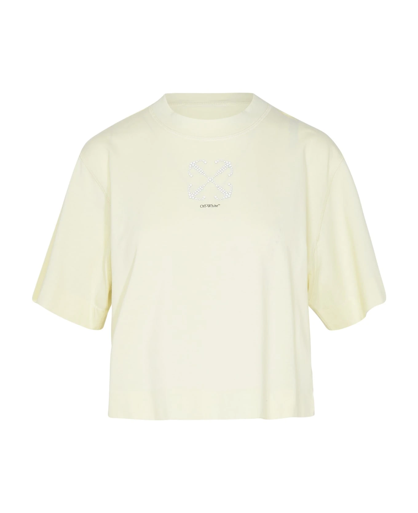 Cropped t-shirt with micro ribbed crew neck, Arrow logo and pattern with beads on the front