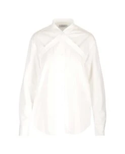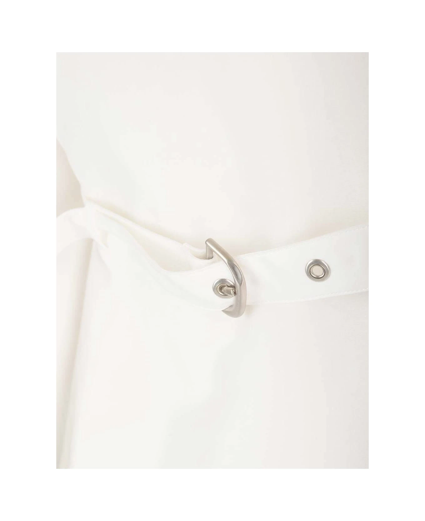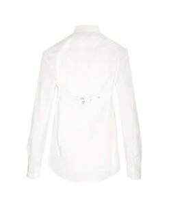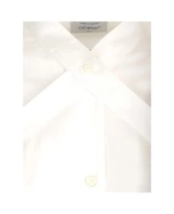 White long-sleeved shirt in cotton poplin from Off-White, with pointed collar, tone-on-tone belt on the chest, cut-out with band on the back, concealed buttons. Regular fit.