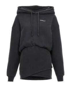 ‘For All Book’ cotton hooded dress with front logo embroidery, elastic waistband, long cuffed sleeves.