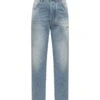 Jeans in grey denim, button and zip closure, waist belt loops, five pockets, logo print back, 100% cotton, Made in Italy, model is 180 cm and wears size 27