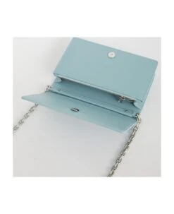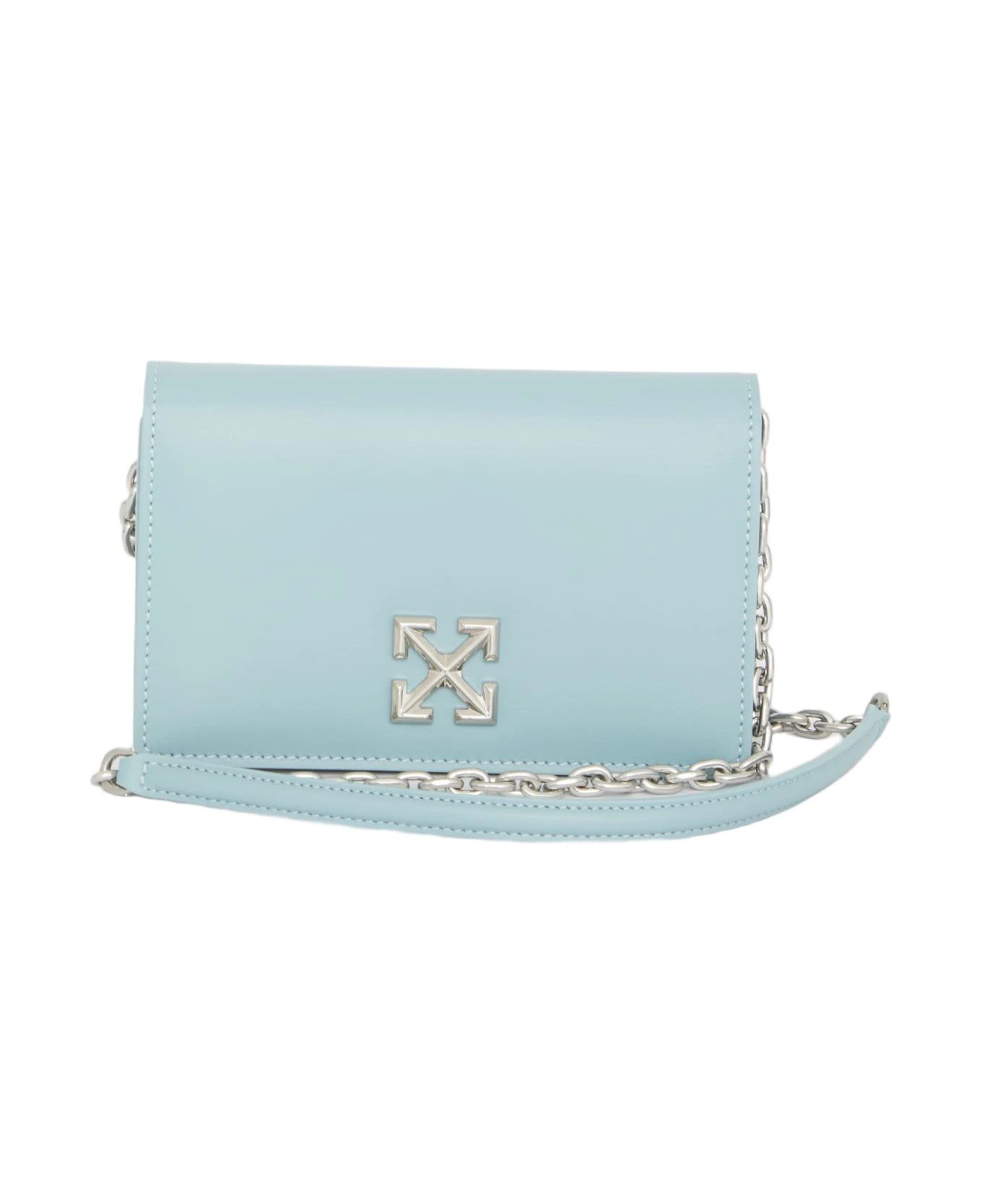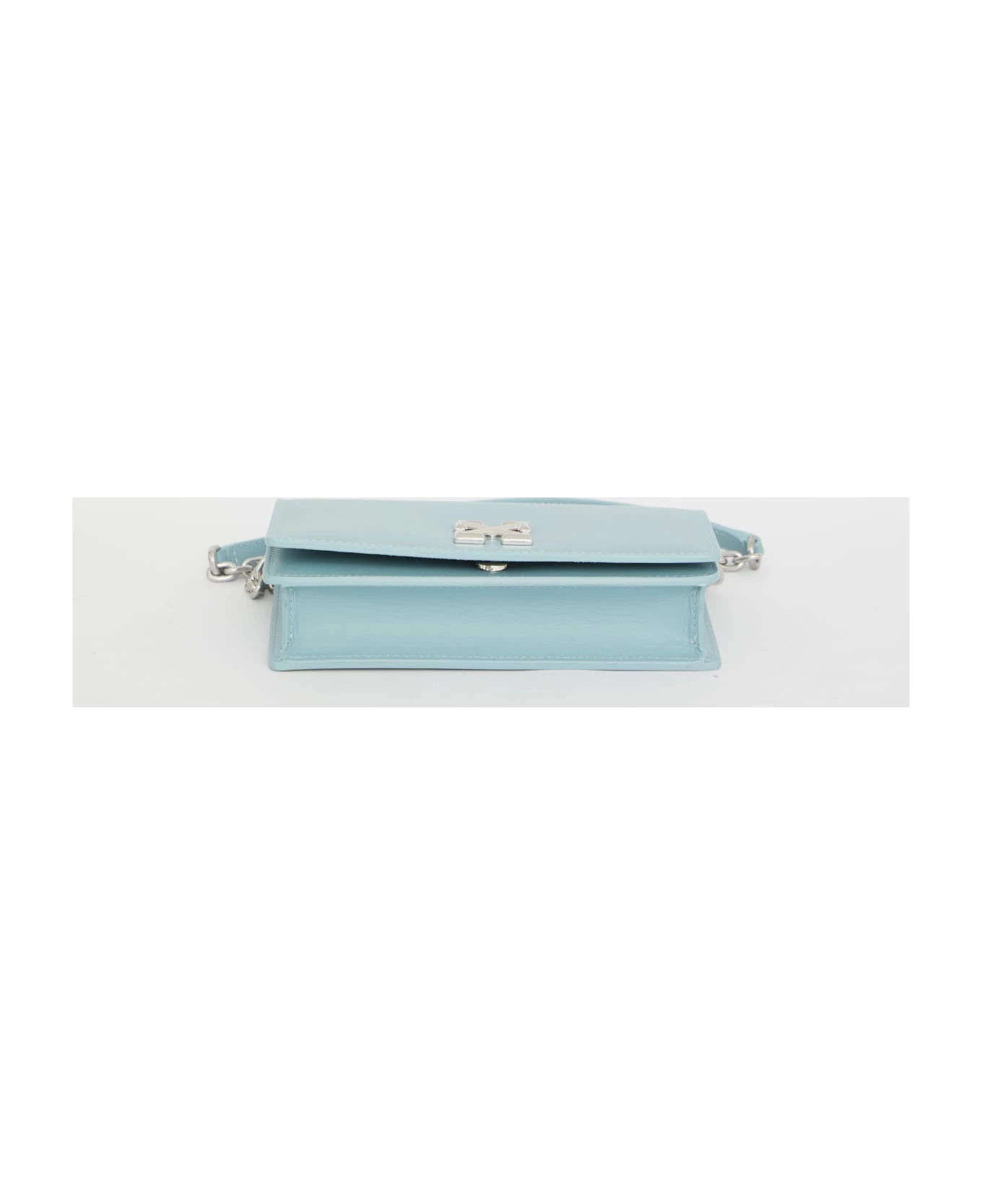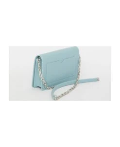 Jitney 0. 5 bag in light-blue leather with Arrows logo in silver-tone metal on the front. It features adjustable and detachable shoulder strap in leather and chain, front flap with press-stud closure, one main interior compartment, one interior zip pocket and one interior card slot. One rear flat pocket.