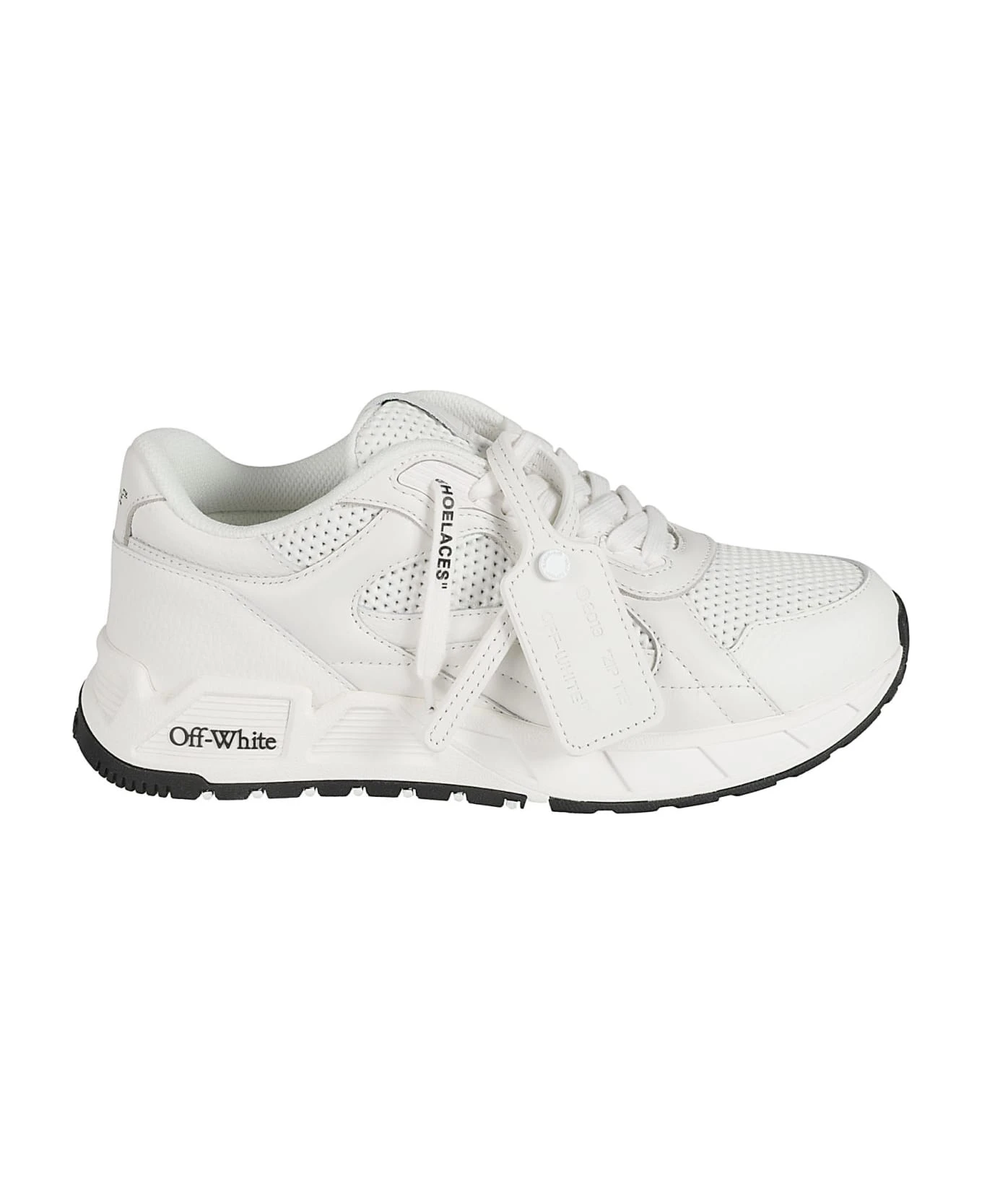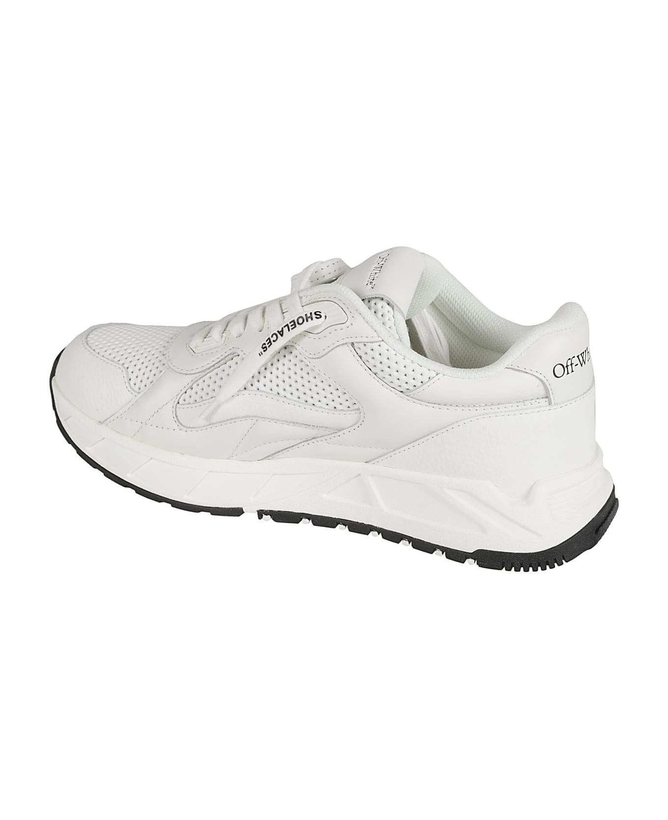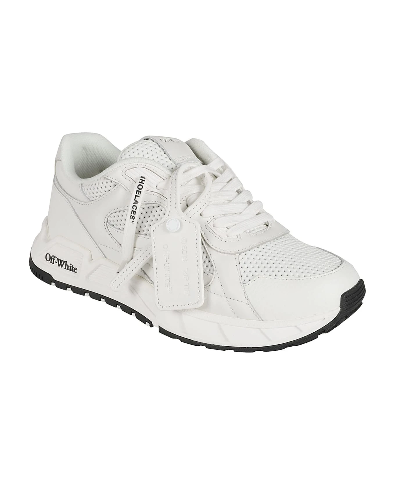 Kick Off lace-up sneakers from OFF-WHITE featuring white, leather, mesh panelling, signature Zip Tie tag, front lace-up fastening, round toe, branded insole, flat rubber sole, logo patch at the tongue and branded heel counter.