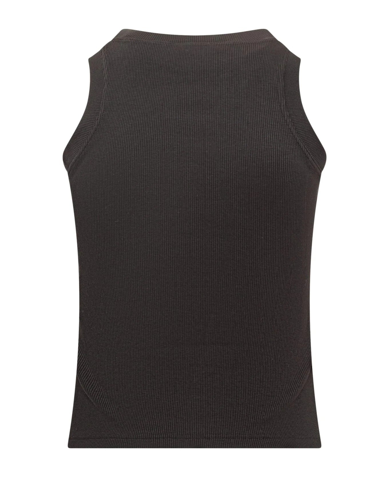 Sleeveless top. Crew neck. Stretch ribbed workmanship. Off logo printed on the front.