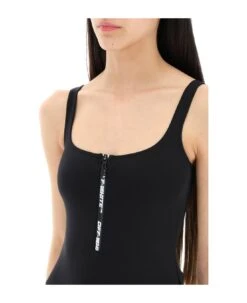 One-piece swimsuit by Off-White crafted in technical stretch fabric with concealed zipper and paperclip zip-puller. Unlined. The model is 177 cm tall and wears 38 IT.