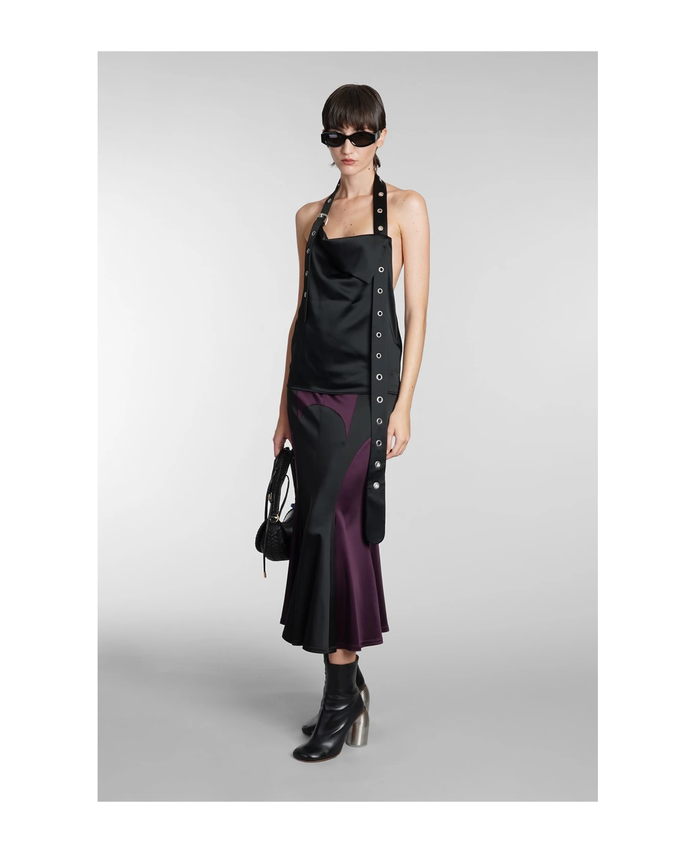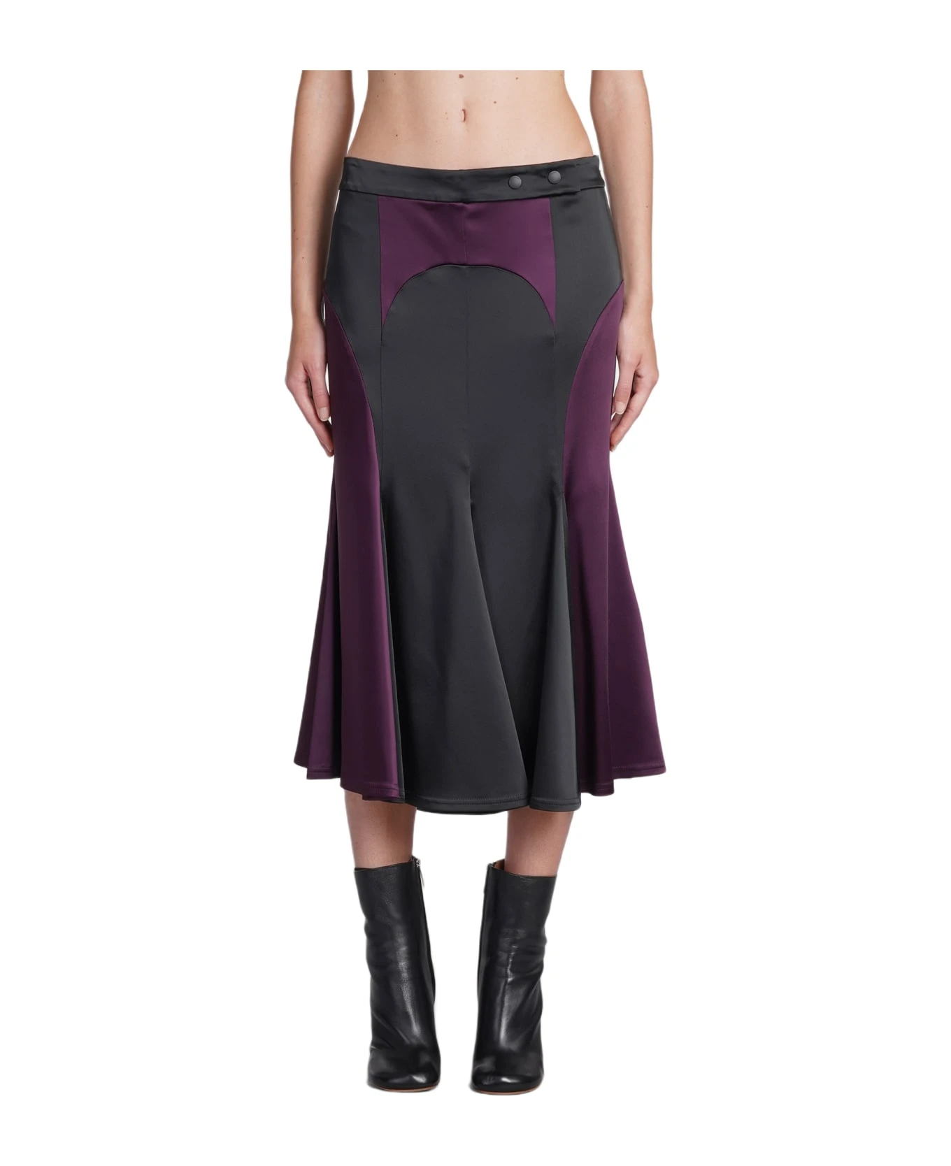 Skirt in black acrylic, automatic buttons, pleats detail, 77% acetate, 20% viscose, 3% elastan, Model is 180 cm and wears size 42, Made in Italy