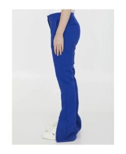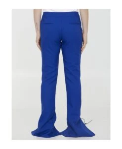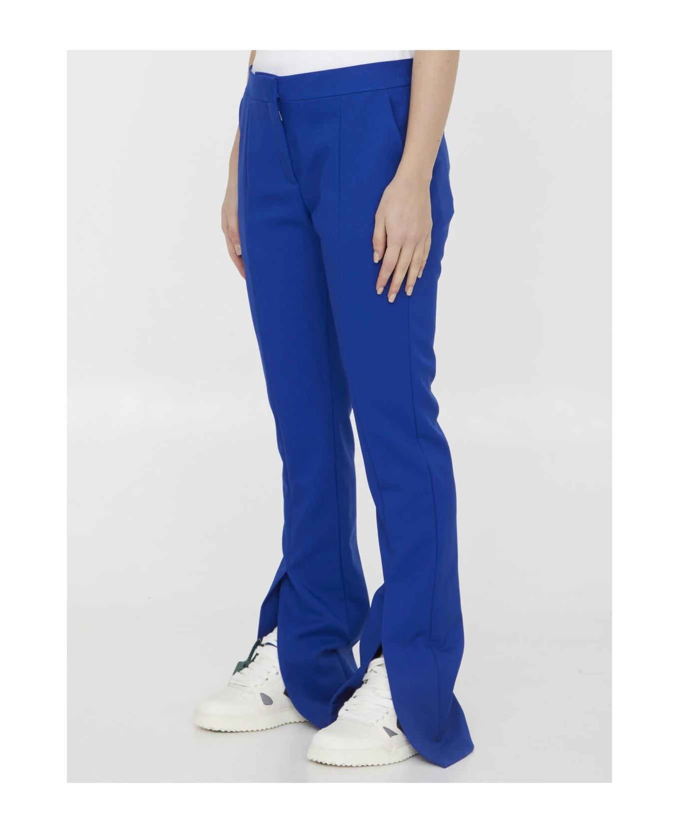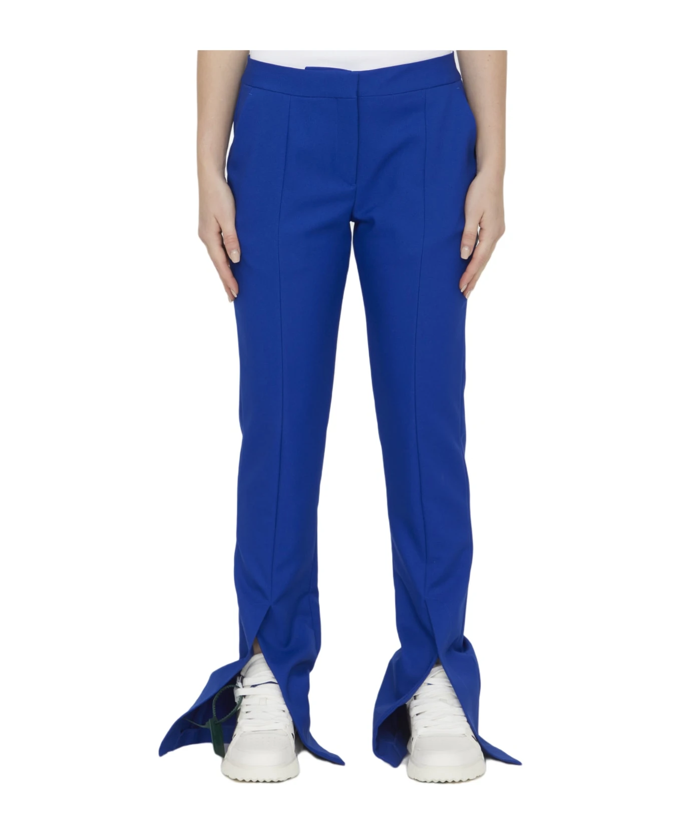 Blue tech drill tailoring pants. It features zip, button and hook-and-eye closure, two side welt pockets, two rear welt pockets and slits at ankles. Slim fit.