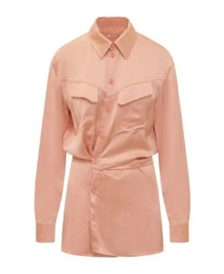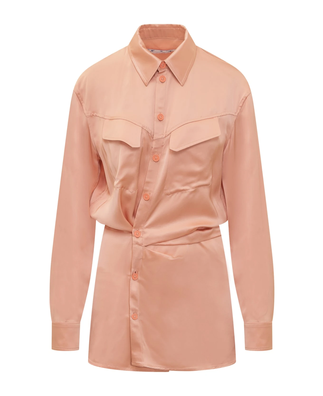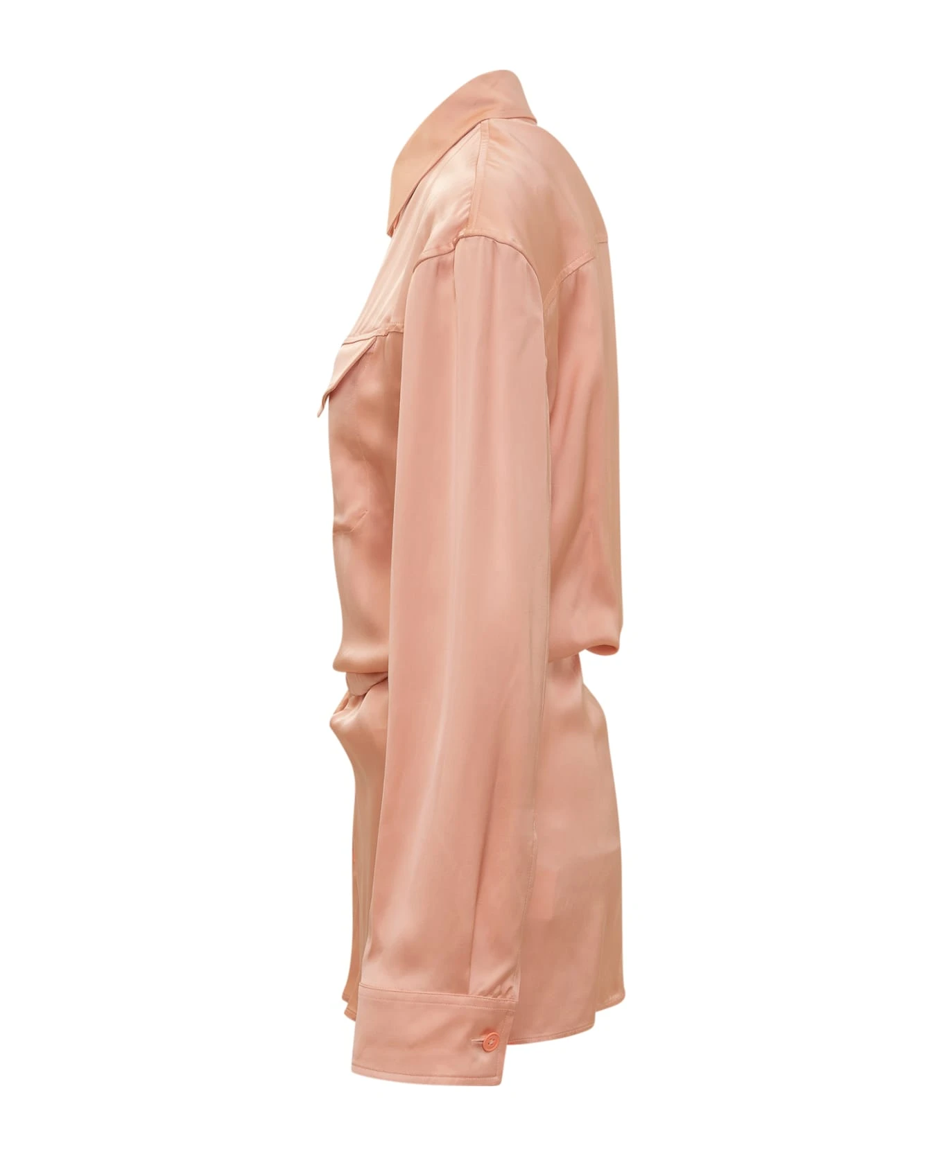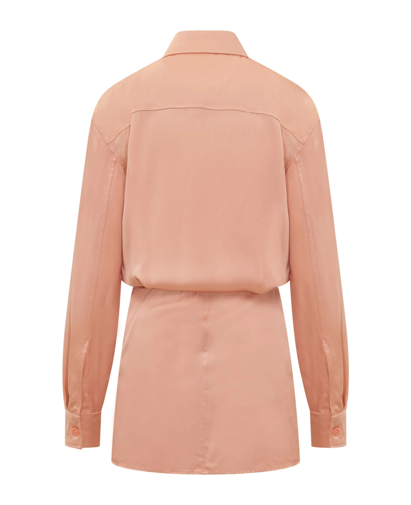 Mini shirt dress. Long sleeves. Button closure. Two pockets on the chest.